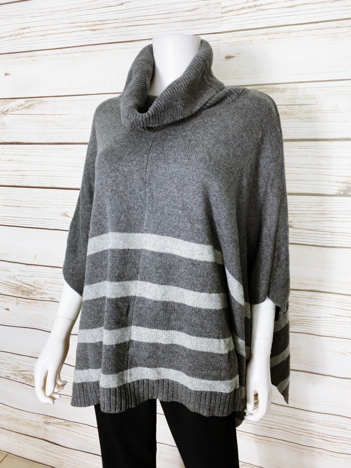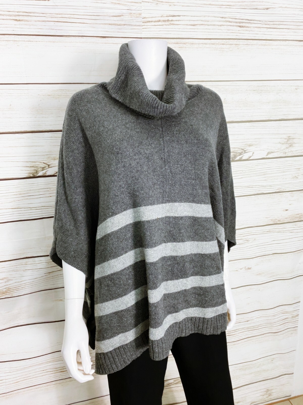 Banana Republic Womens Cowl Neck Sweater Poncho Size S Gray Striped Shawl Wrap