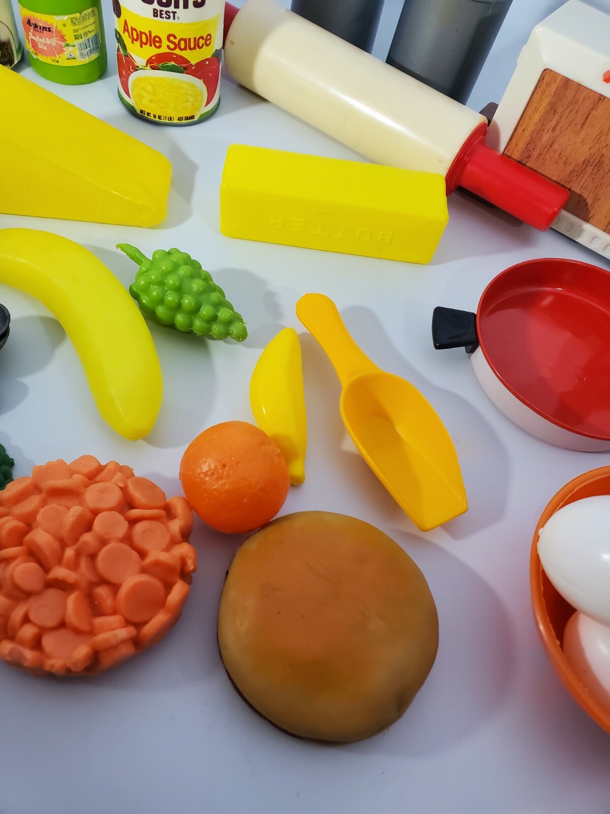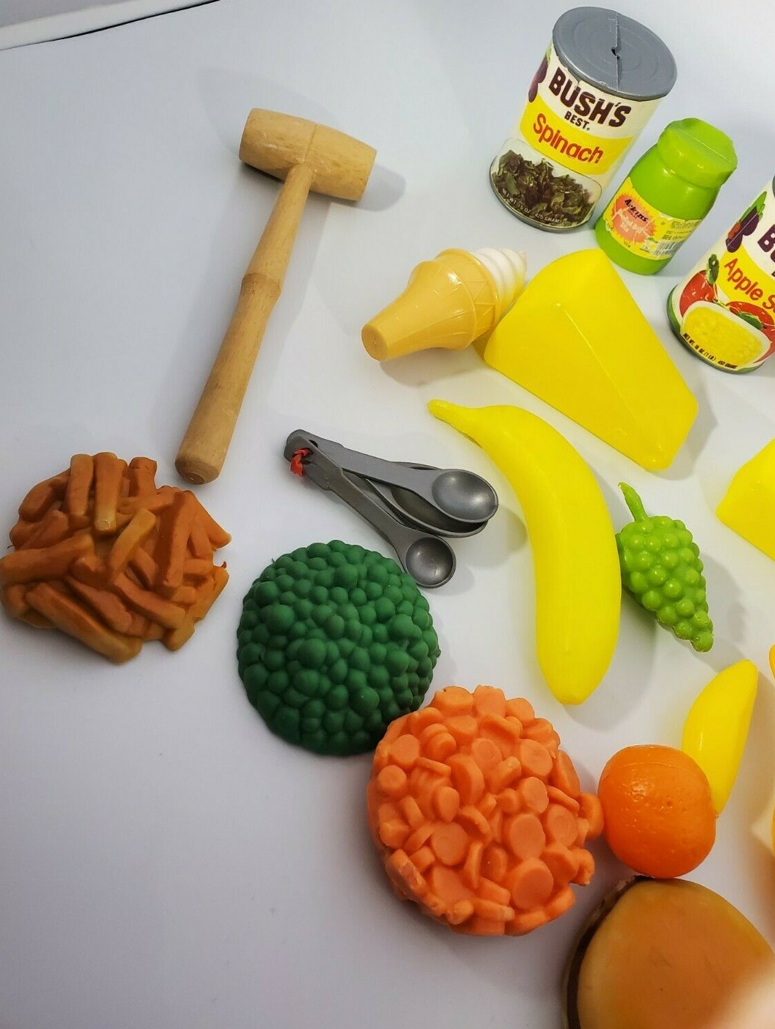 Vintage Pretend Play Food Lot Toaster Eggs Canned Goods Fruit Veggies