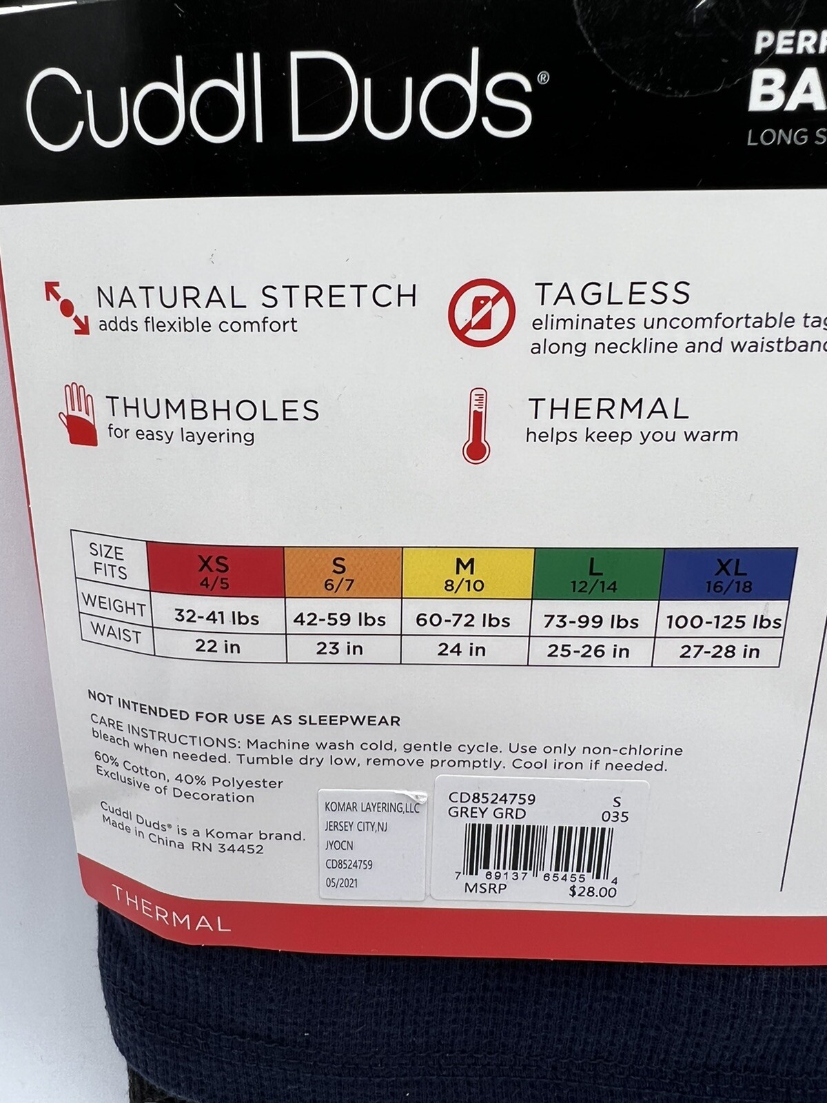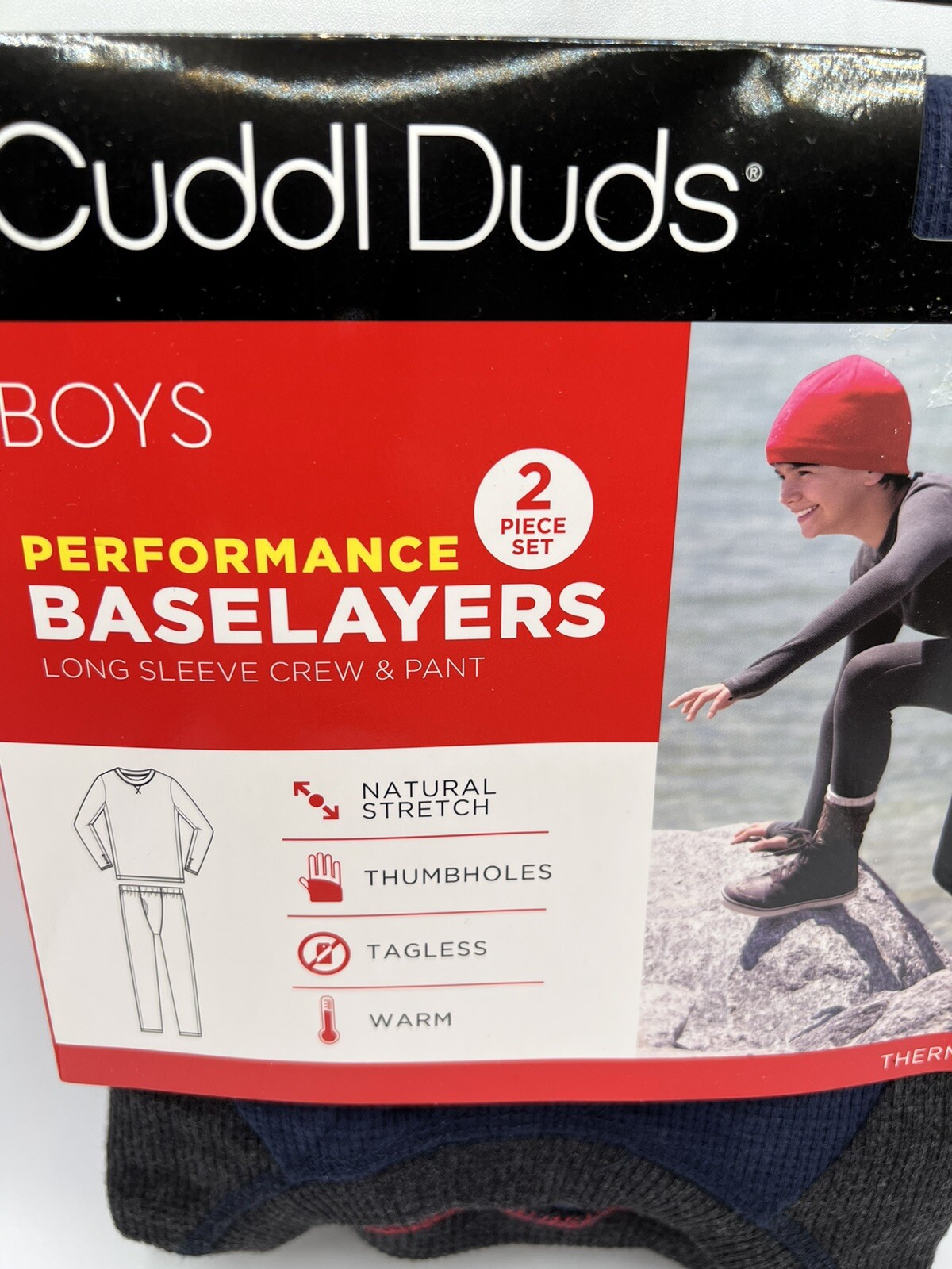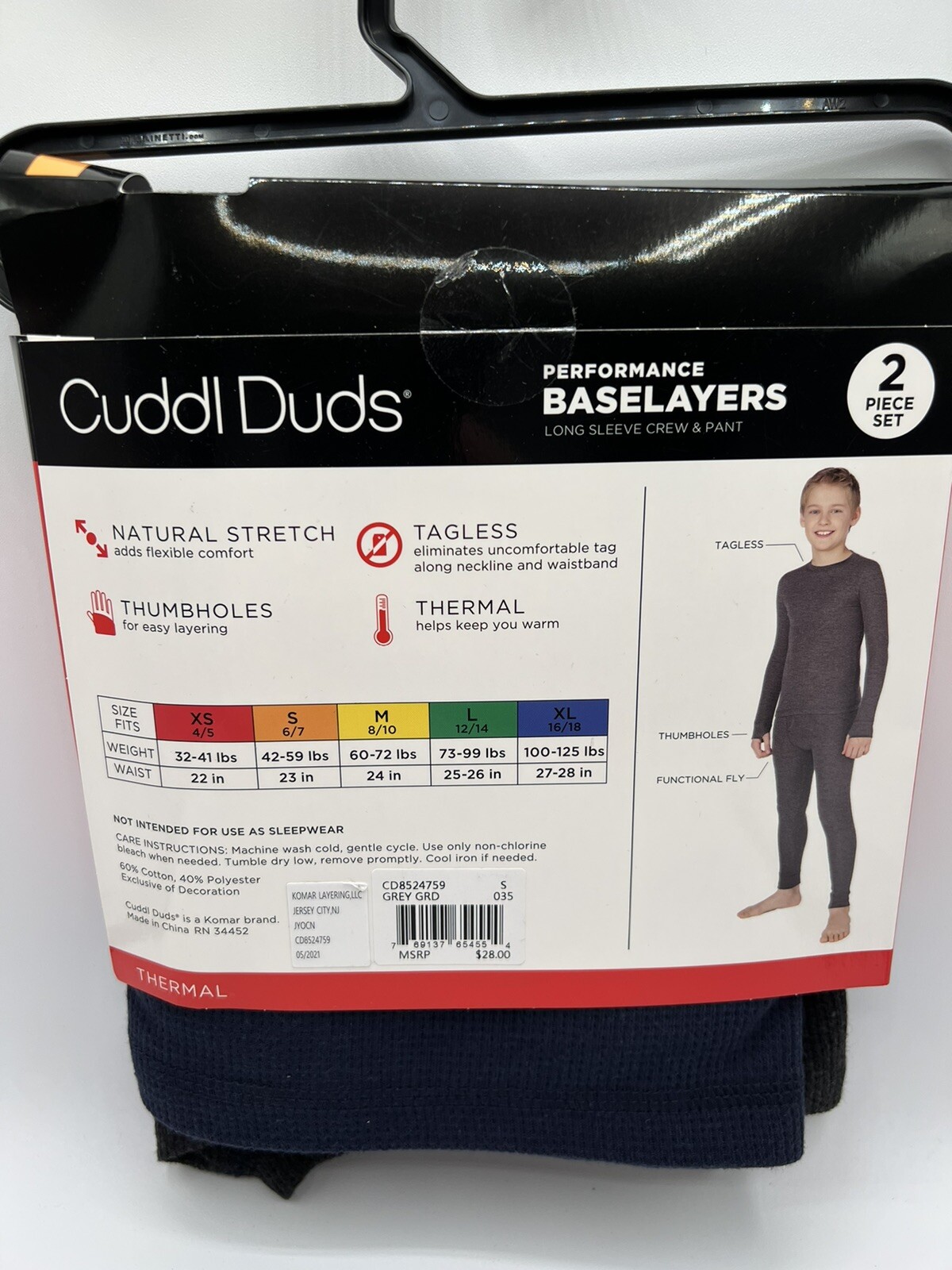 NEW Cuddl Duds Boys Baselayers Thermal 2 Piece Set Grey Navy Small 6/7 NWT