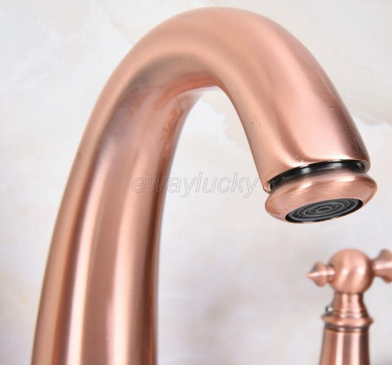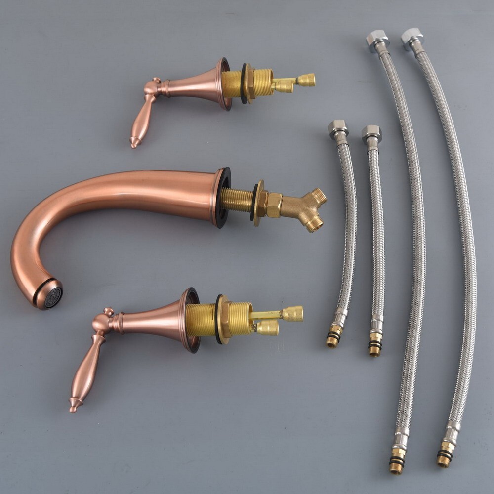 Antique Red Copper 3 Holes Bath Tub Mixer Tap Widespread Bathroom Sink Faucet