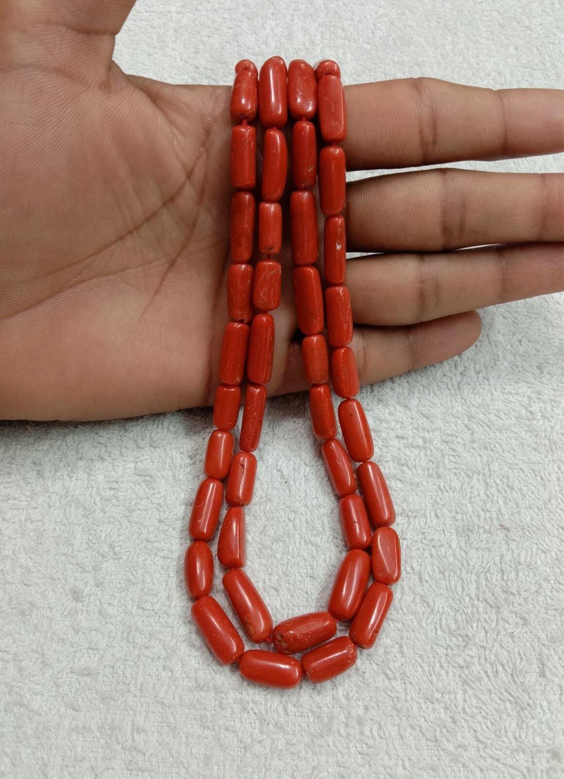 16INCHES 100 Natural Italian Coral Smooth Oval Beads,Size 5x14mm to 7.50x15mm,
