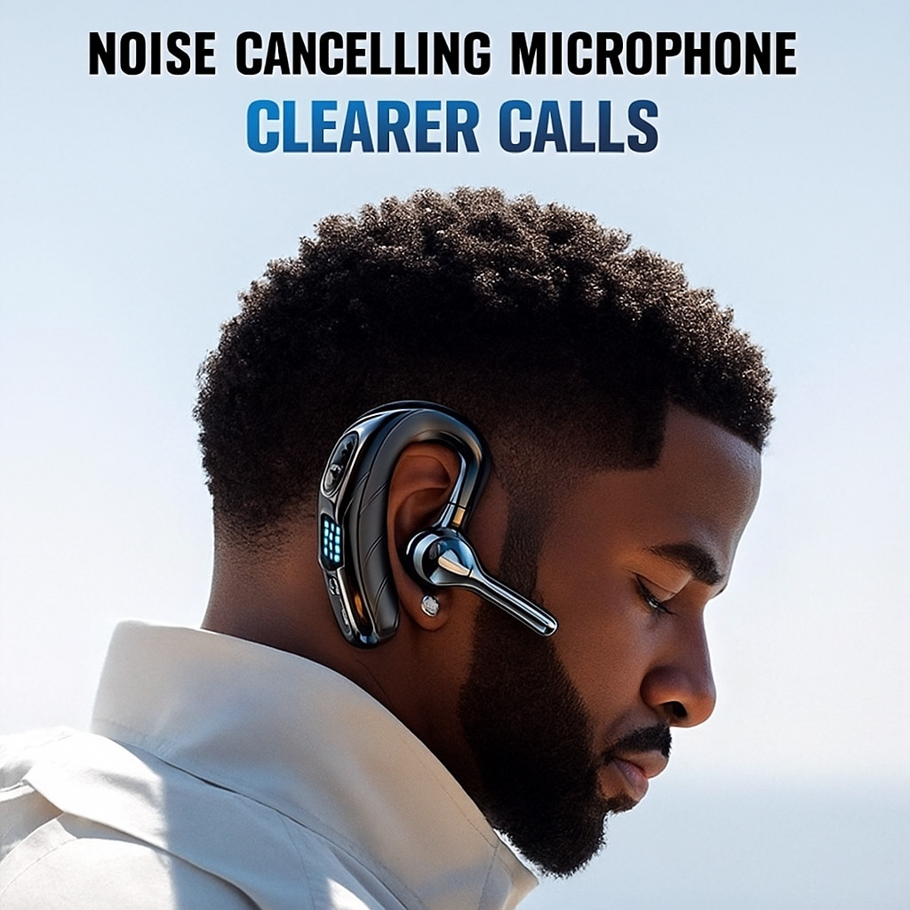 Bluetooth 5.2 Earpiece Wireless Headset Driving Trucker Earbuds Noise Cancelling