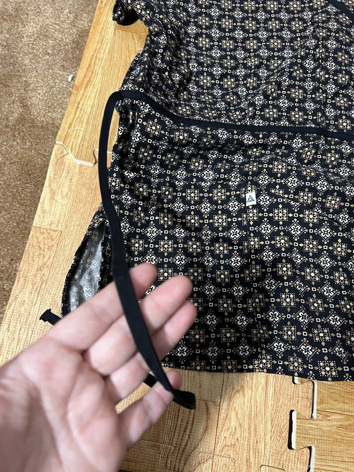 как выглядит CHEROKEE Studio 3815C scrubs top dental medical nurse vet M black floral wrap фото