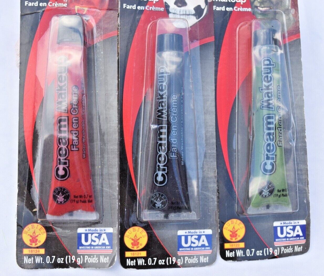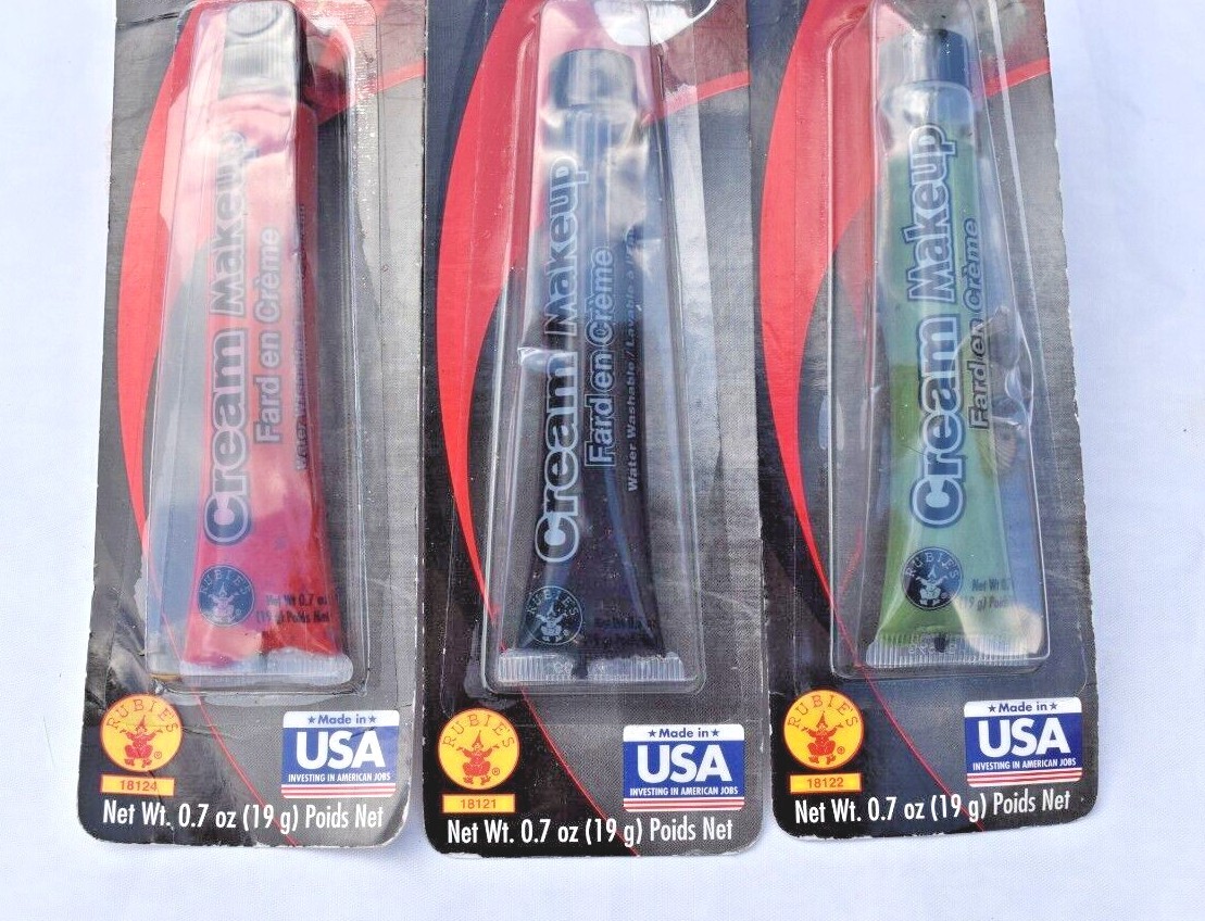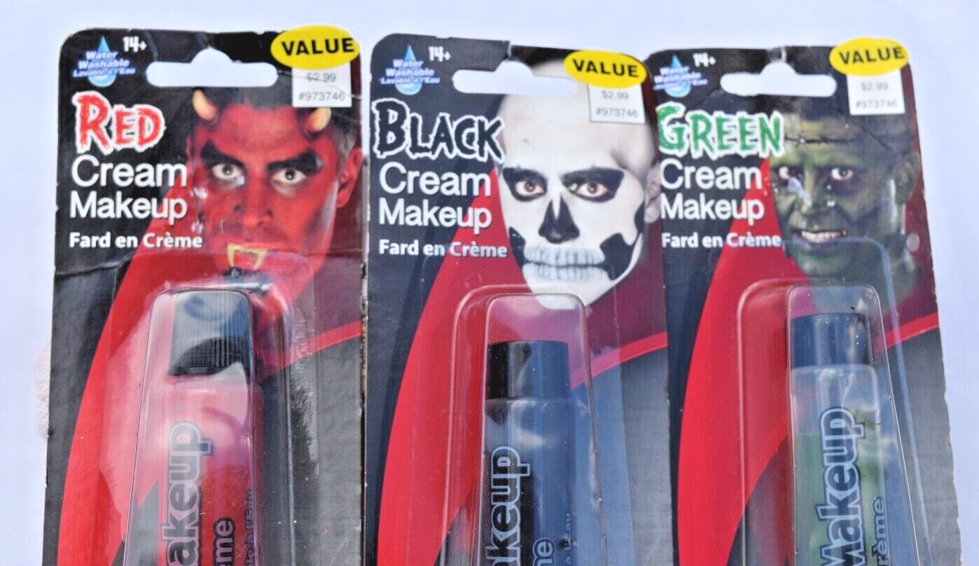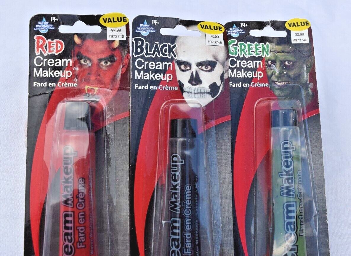 Lot of 3 Black Red Green Cream Make-up Face Body Paint Water Washable Halloween