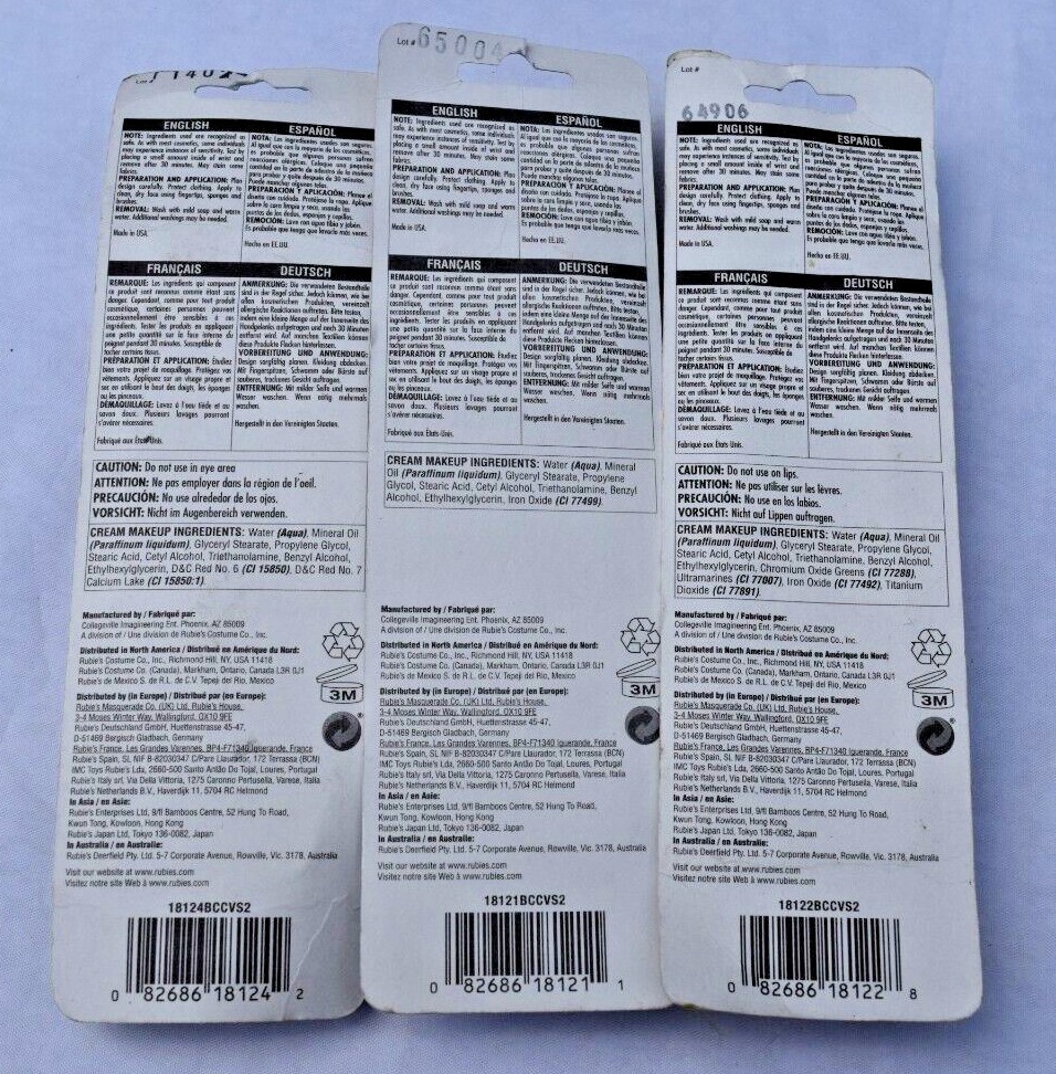 как выглядит Lot of 3 Black Red Green Cream Make-up Face Body Paint Water Washable Halloween фото