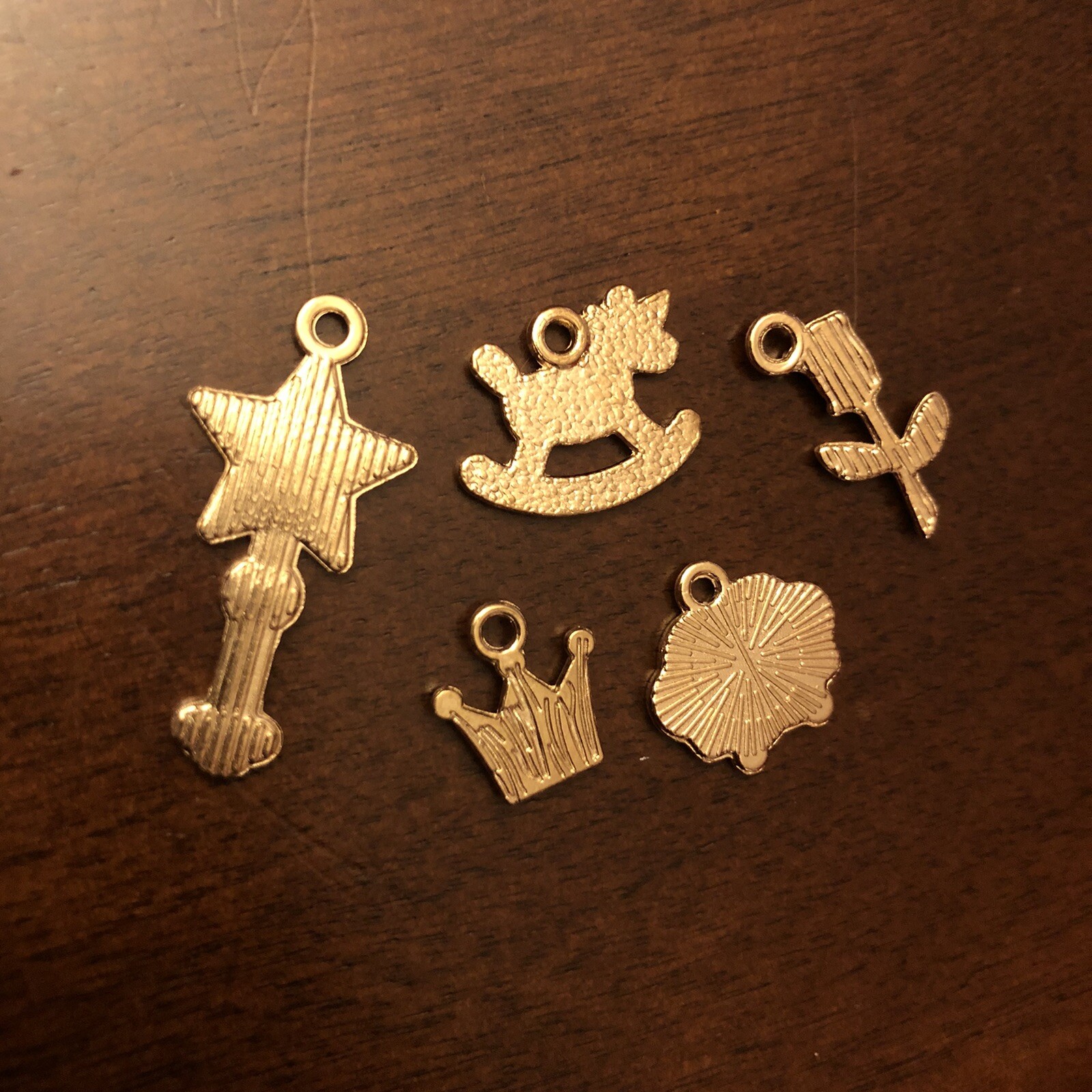 как выглядит 5pc CHARMS LOT Pink White Baby Girl Bracelet Princess Rose Unicorn Sheep Crown фото