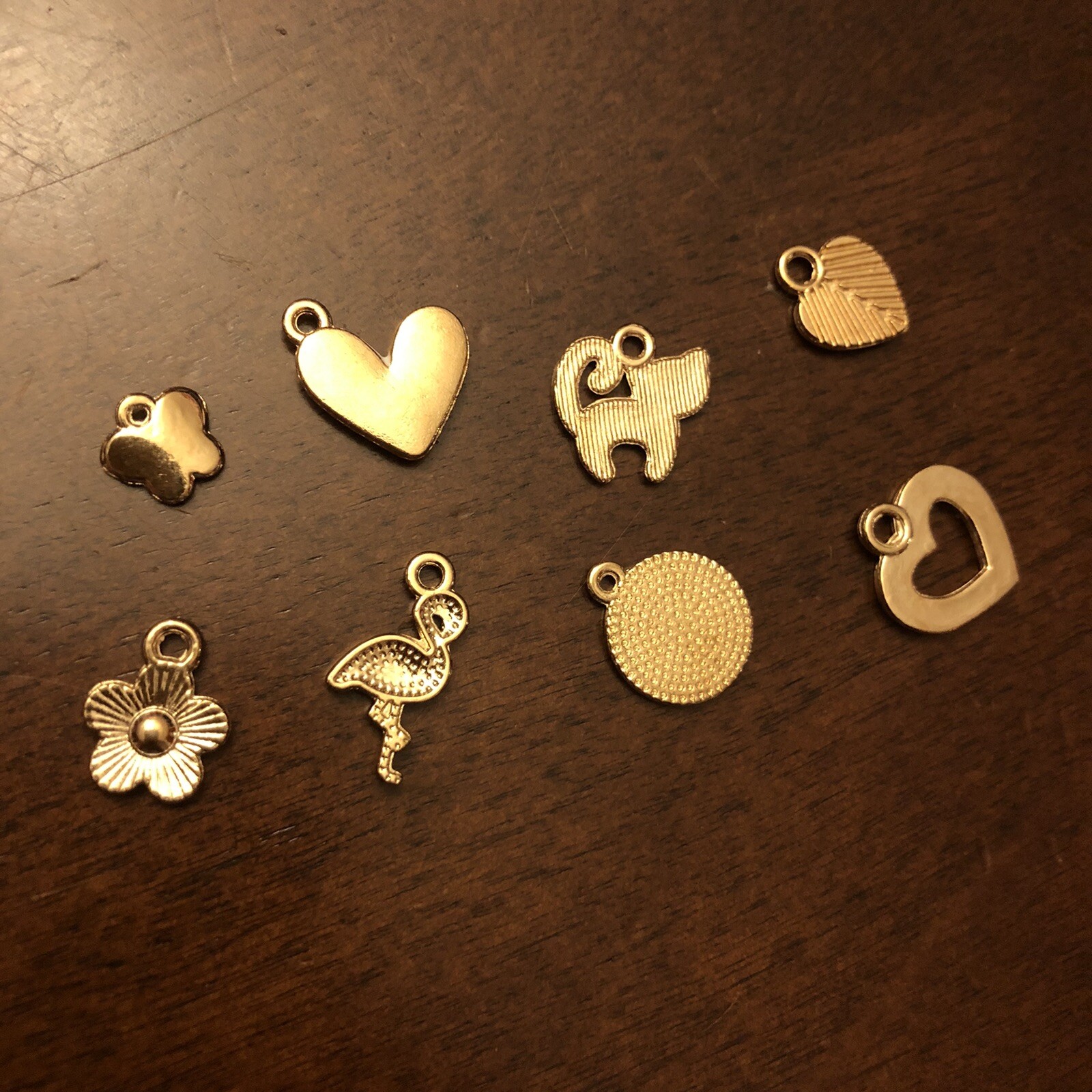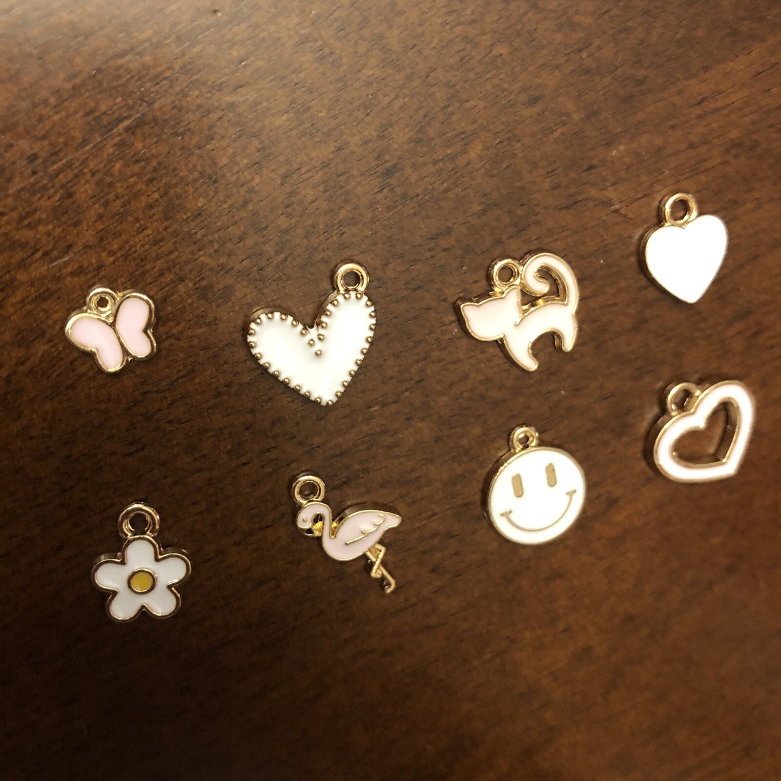 8pc CHARM LOT Pink White Girl Bracelet Heart Flower Cat Kitty Flamingo Butterfly