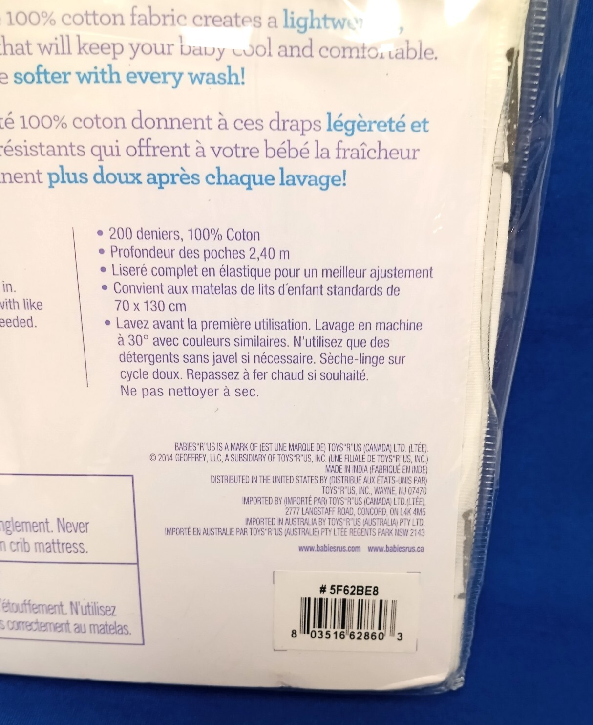 как выглядит Babies R Us Cool PERCALE Fitted Crib Sheet ELEPHANTS Fits 28 x 52 Mattress фото