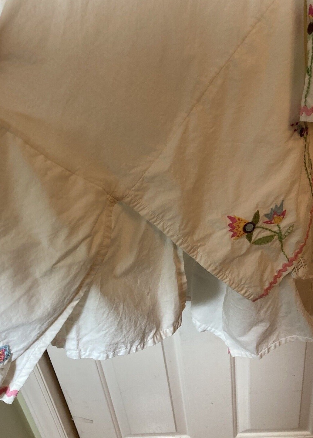 Pottery Barn Kids Crib Dust Ruffle Bed Skirt White Cotton Embroider Appliques