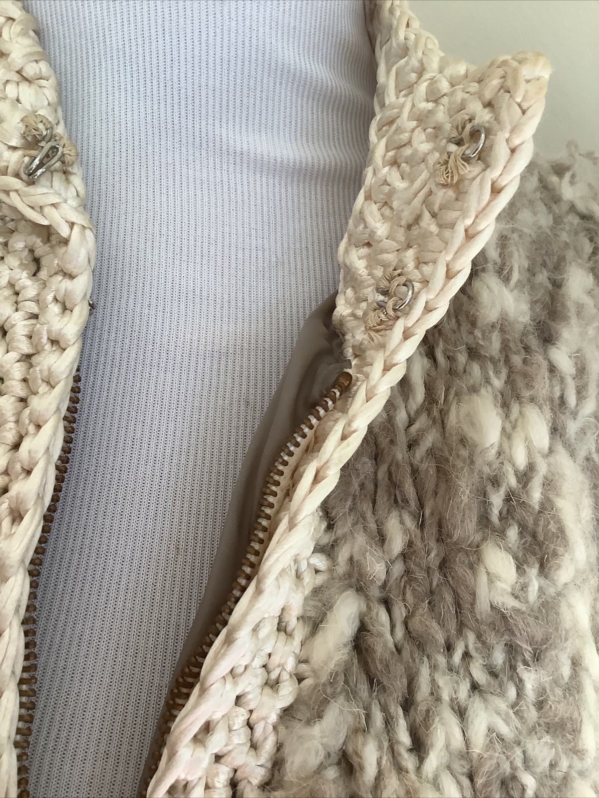 как выглядит vintage 1950s heavy wool crochet m sweater jacket фото