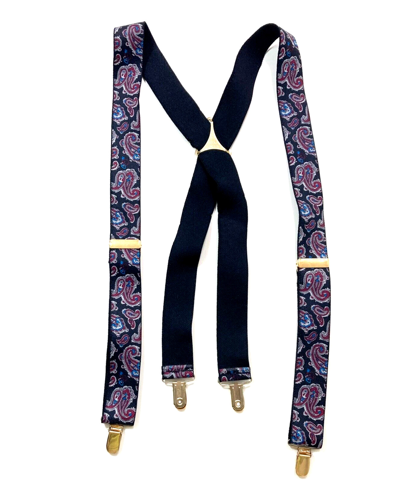 Pelican USA Elastic Suspenders, Black, Paisley Print, X-Back Clip On