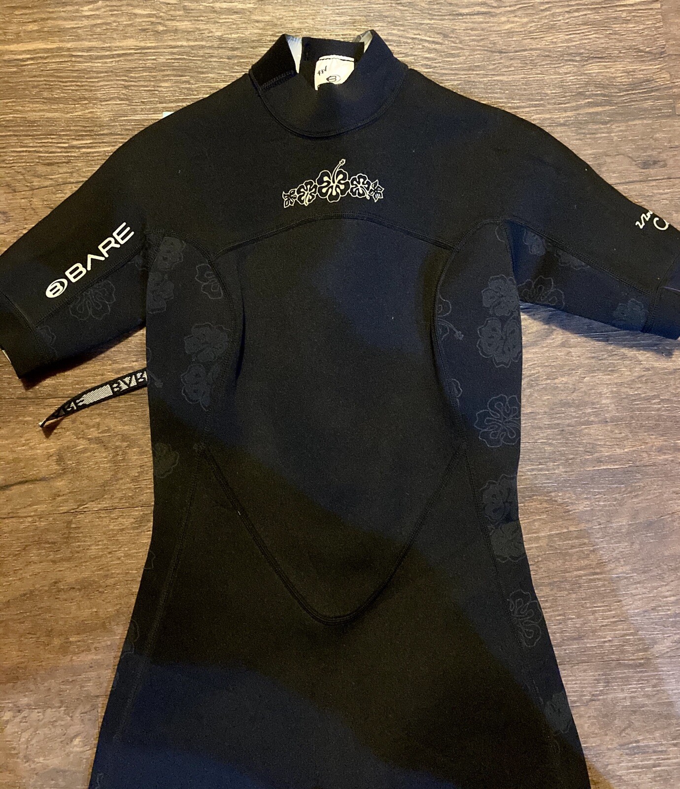 BARE 2mm Crush Shorty Women's Wetsuit Sz 8 Black Hibiscus Diving Scuba NWT