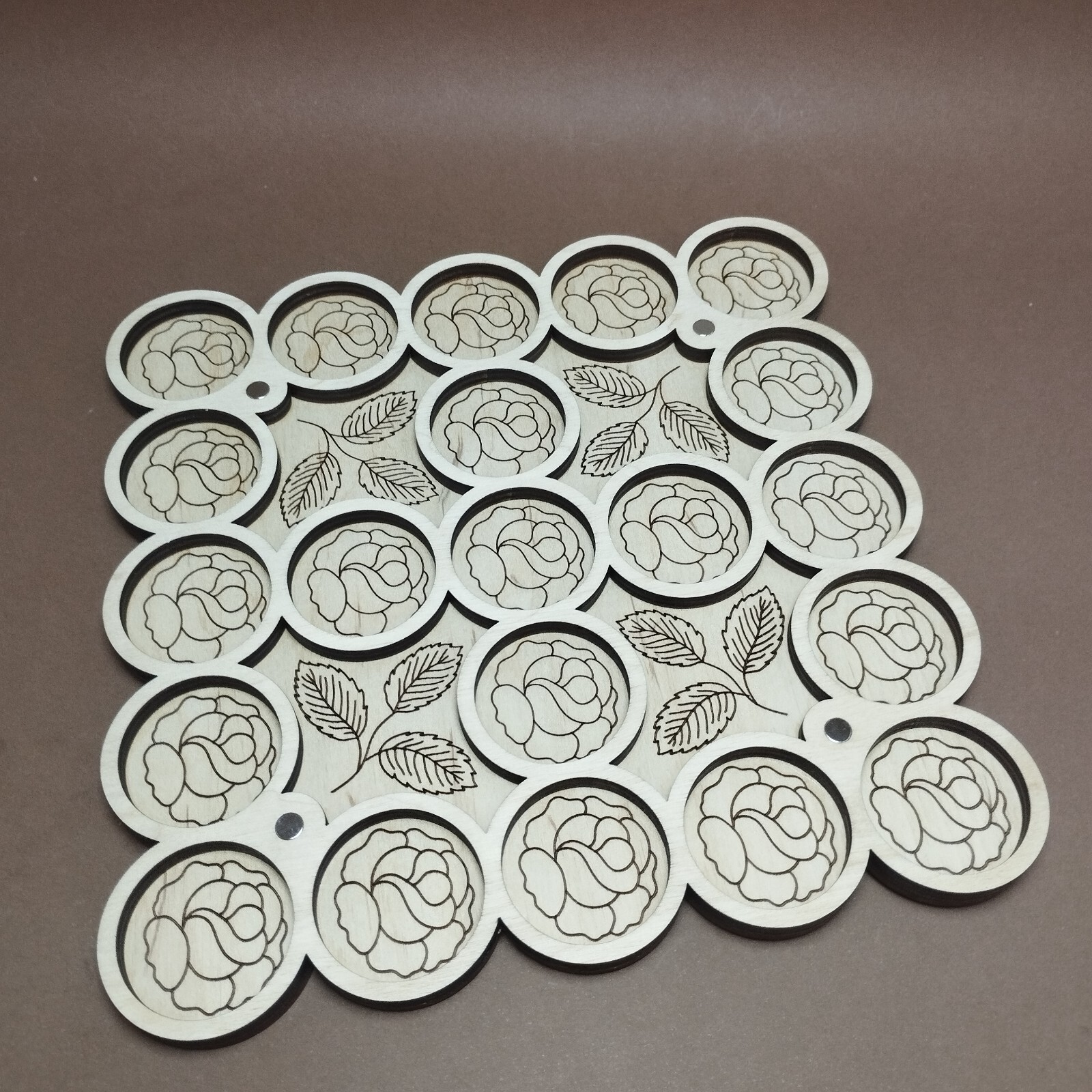 Wooden organizer for beads with a transparent lid for 25 cells