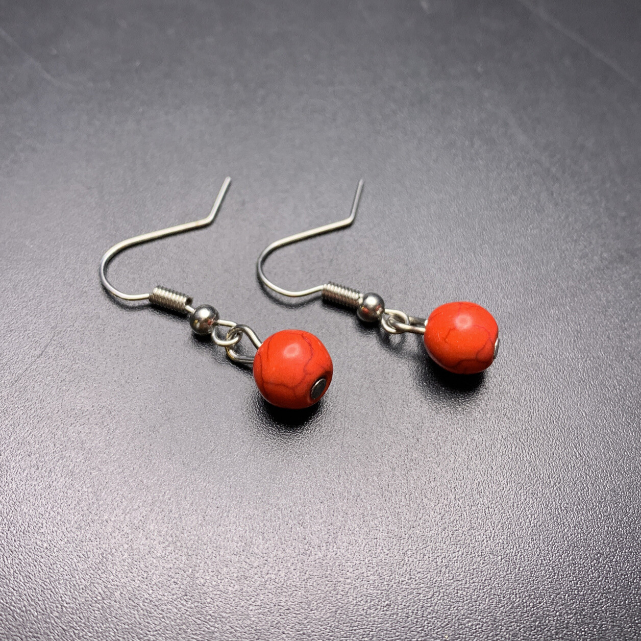 Dainty Red Stone Bead Drop Dangle Earrings Hook Dyed Howlite Gemstone Hook