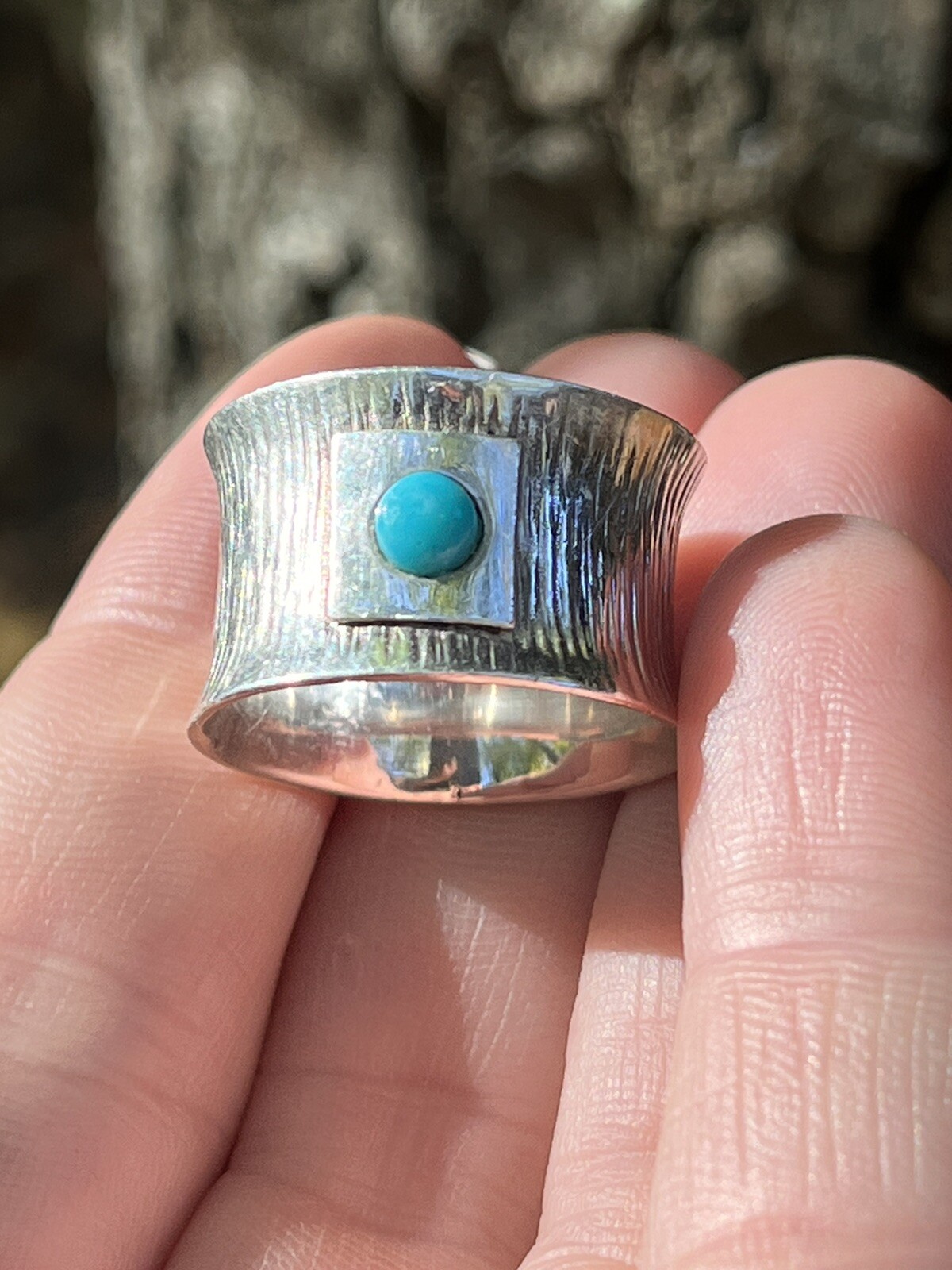 Sterling Silver Turquoise Wide Textured Band Ring. Size 7.5.
