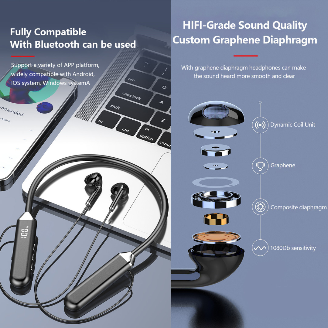 Sweatproof Neckband Headset Wireless Bluetooth Bendable Sport Headphones Earbuds