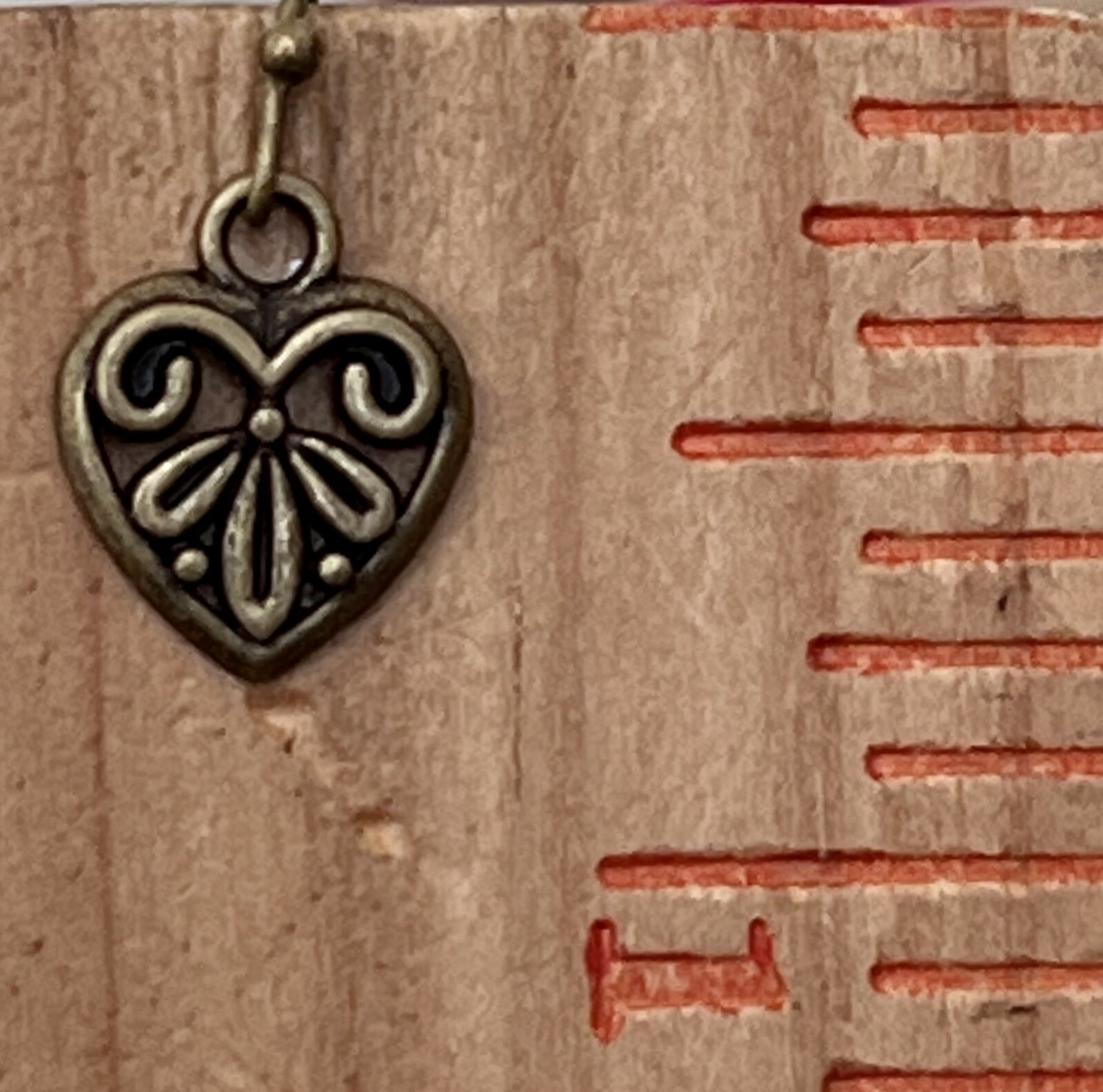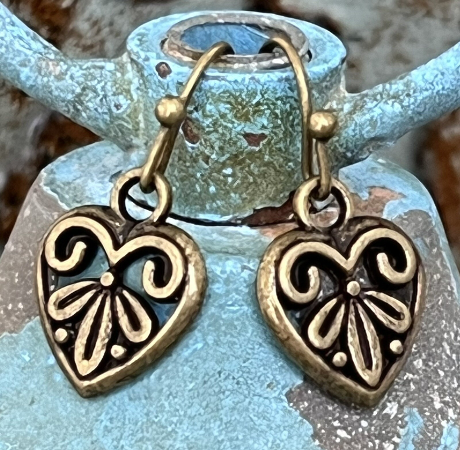 как выглядит Bronze Etched Heart Charm Dangle Earrings. Love. Romance. Valentine фото