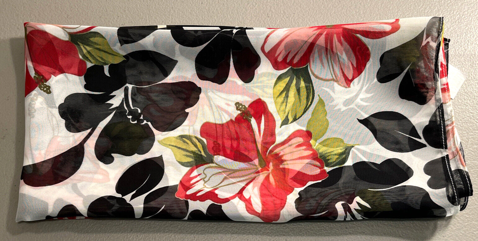 Large Island Hibiscus Flower Gift USA Fashion Scarf Vintage EUC Floral 55 X 29