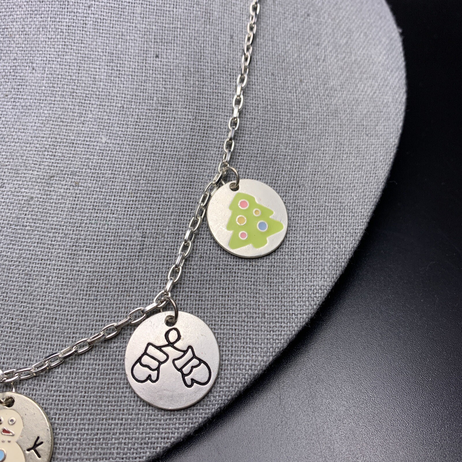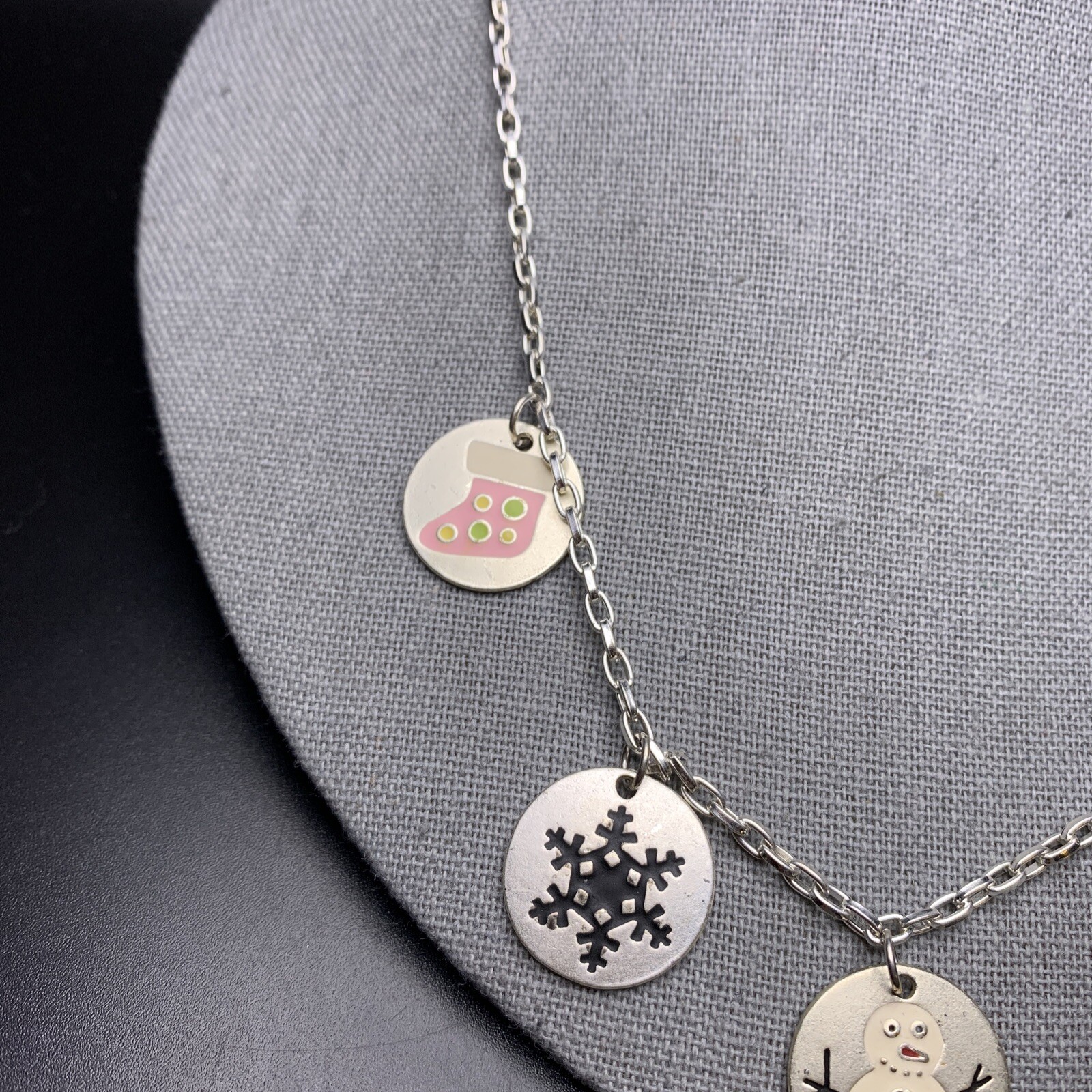Christmas Charm Necklace Silver Tone Snowman Tree Snowflake Stocking Holiday
