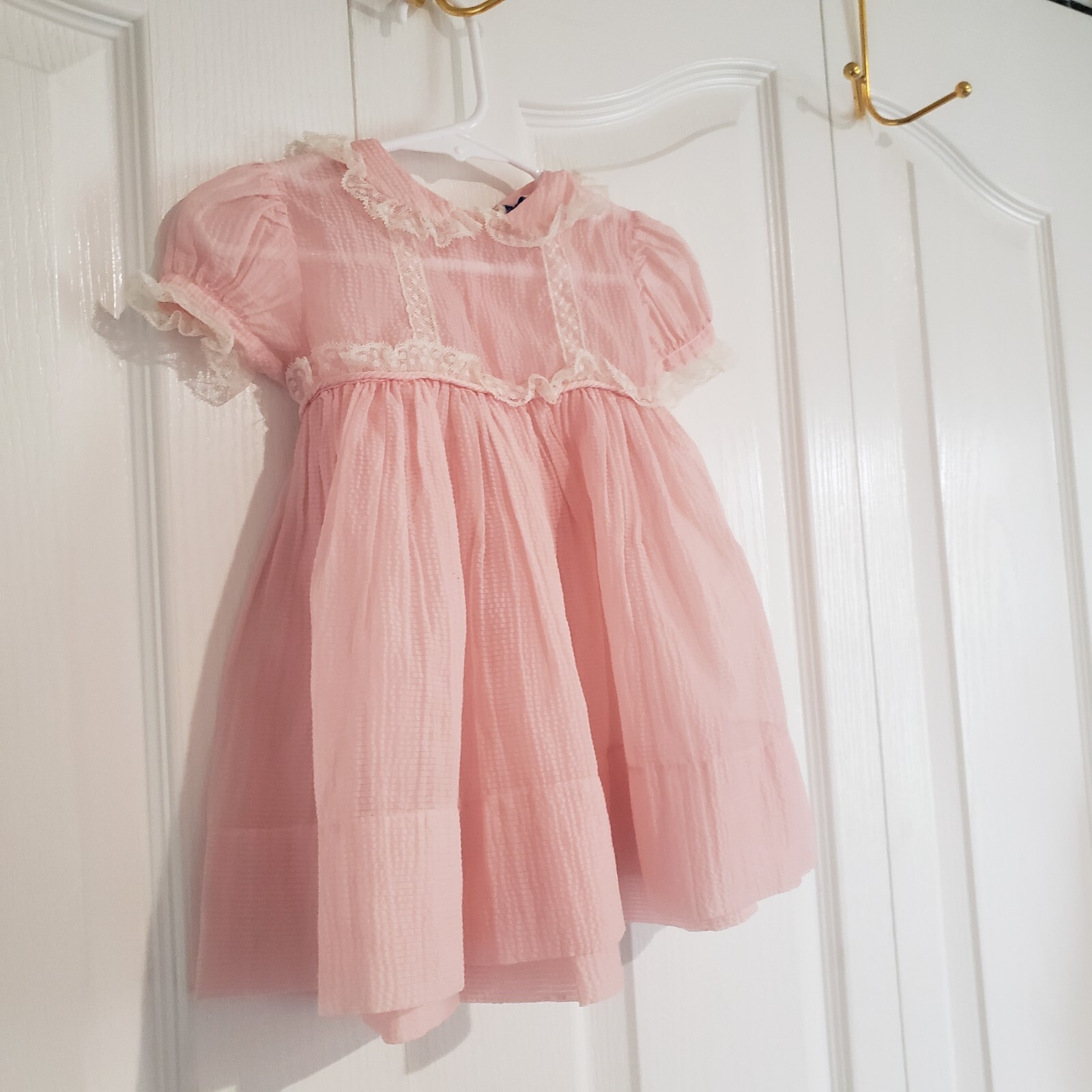 как выглядит Vintage 1950s Tiny Town Togs Infant Girls 12m Pink Waffle Nylon Dress фото