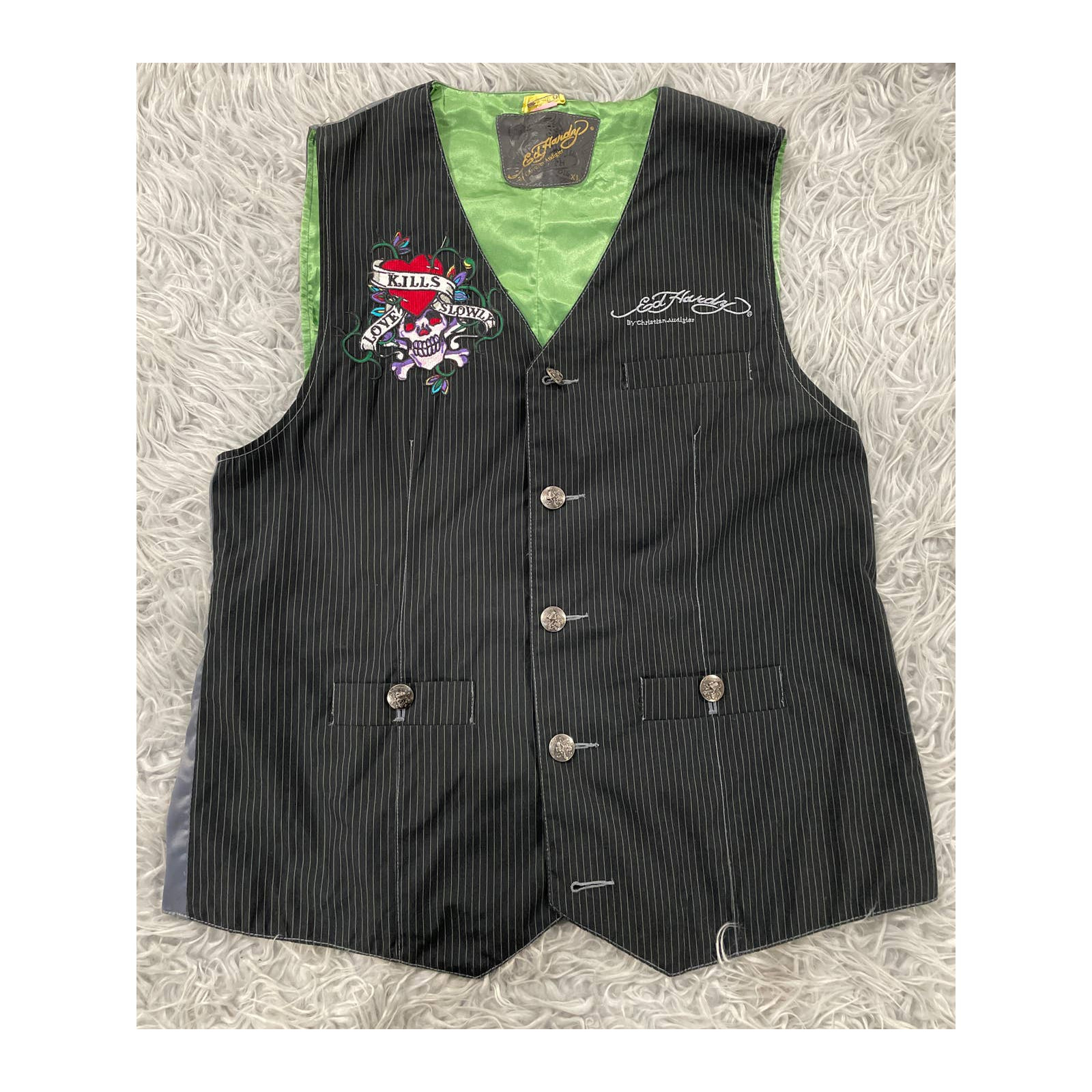 как выглядит VTG Ed Hardy Christian Audigier Vest Love Kills Slowly Skull Flowers Sz XL фото