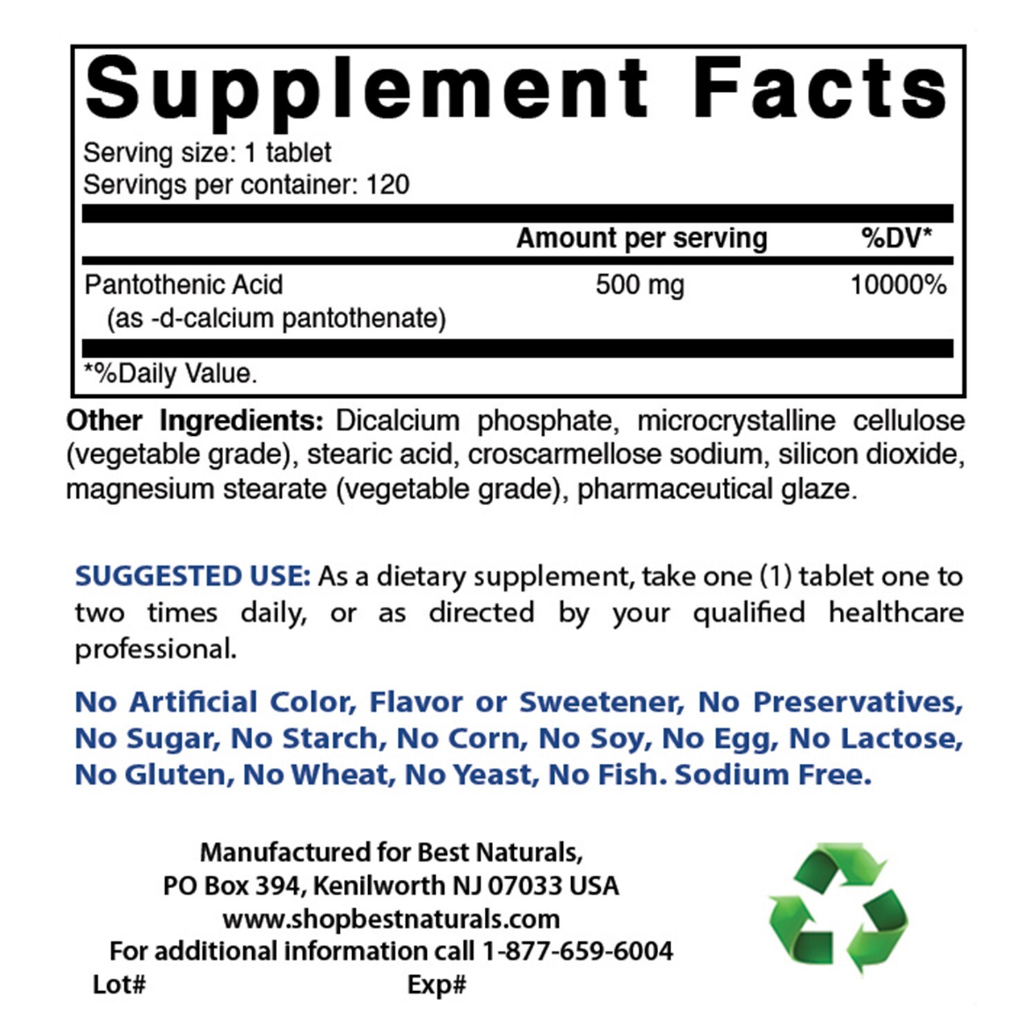 Best Naturals Pantothenic Acid 500 mg 120 Tablets