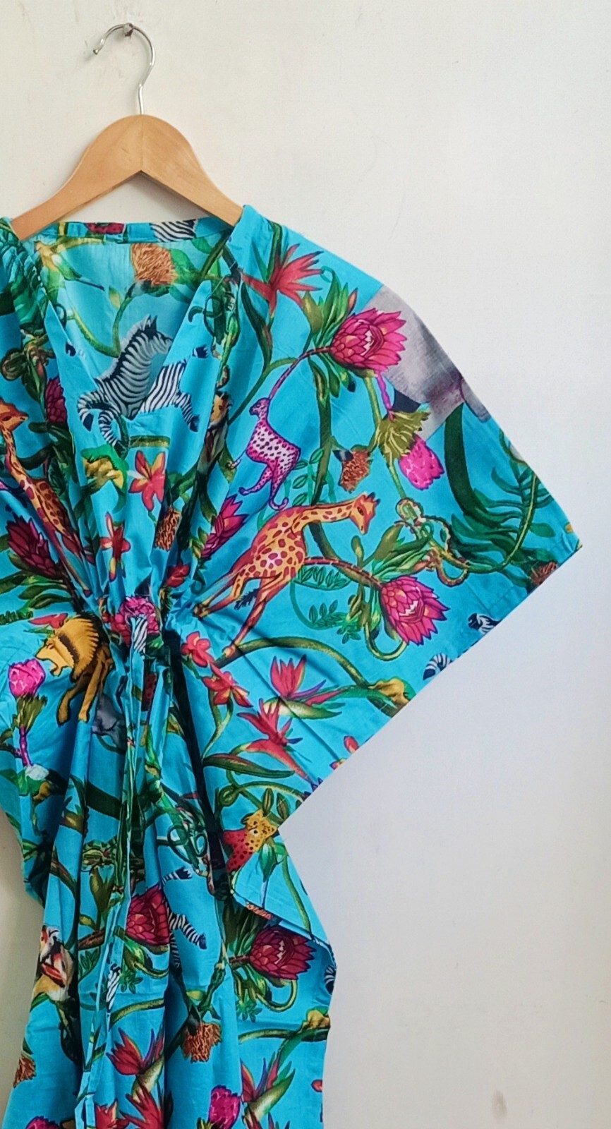 как выглядит Indian Turquoise Cotton All Animals Cotton Kaftan Dress Night Maxi Dress Gown US фото