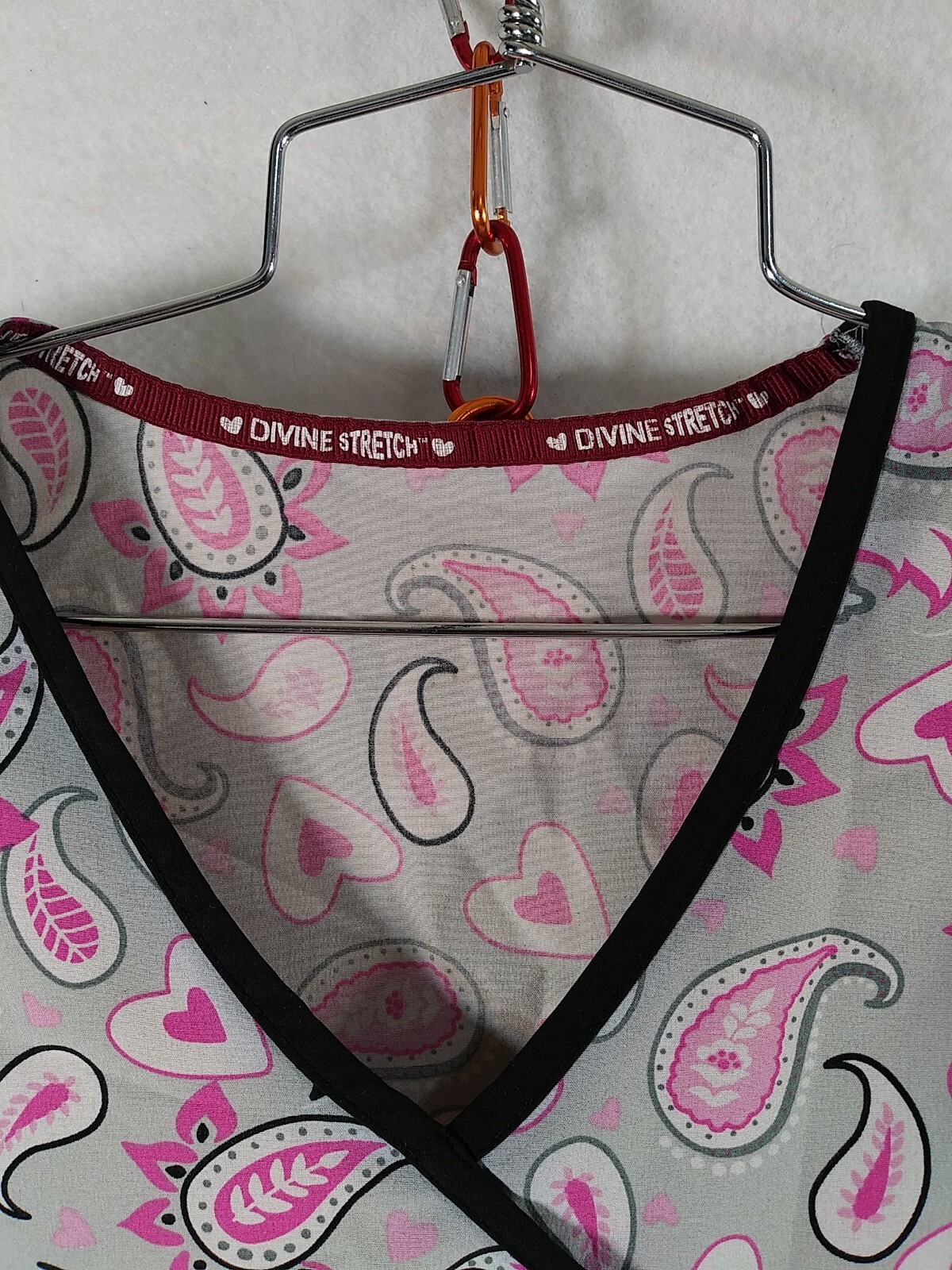 Divine Stretch Scrub Top Women Medium Floral Pockets Medical