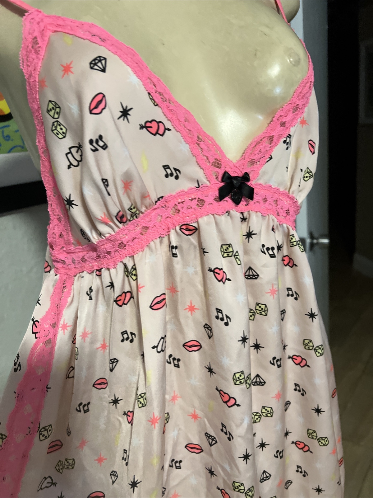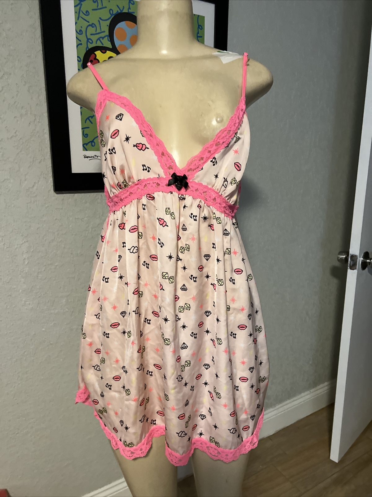 SISSY BETSEY JOHNSON LIPS, HEARTS ,DIAMONDS, DICE, LACE BABYDOLL SZ L xpx