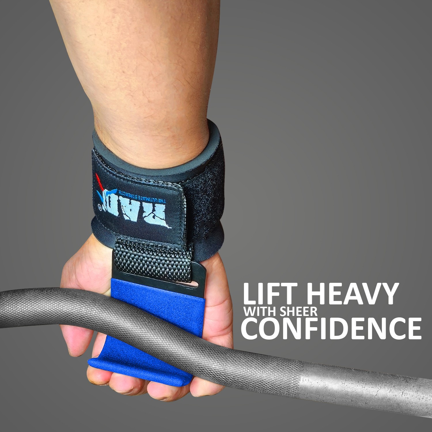 Weight Lifting Hooks with Wrist Support for Chin-Ups Pull-Ups - Blue