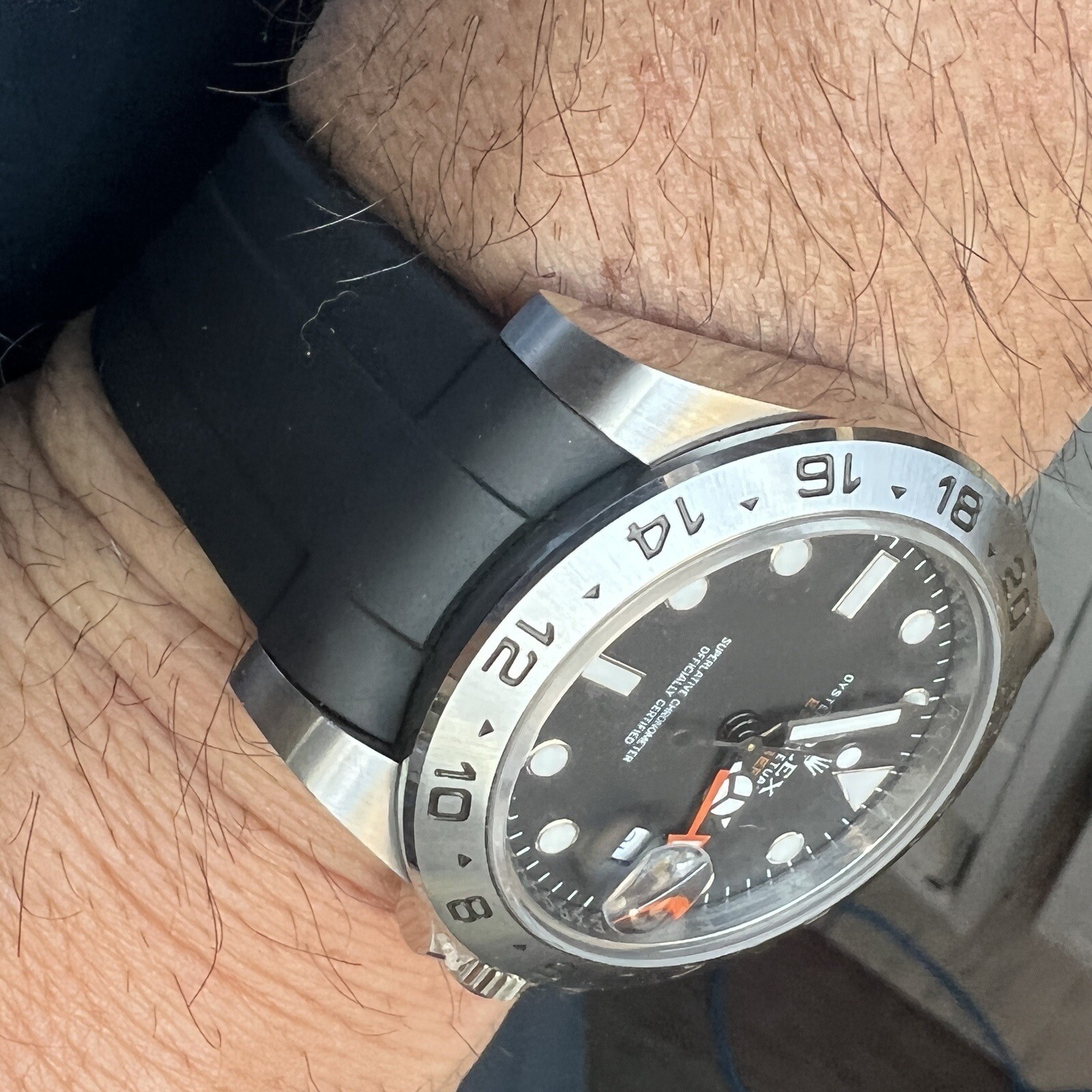 как выглядит 21mm BLACK Vulcanized Caoutchouc rubber Strap New 42mm Rolex EXPLORER II Watch фото