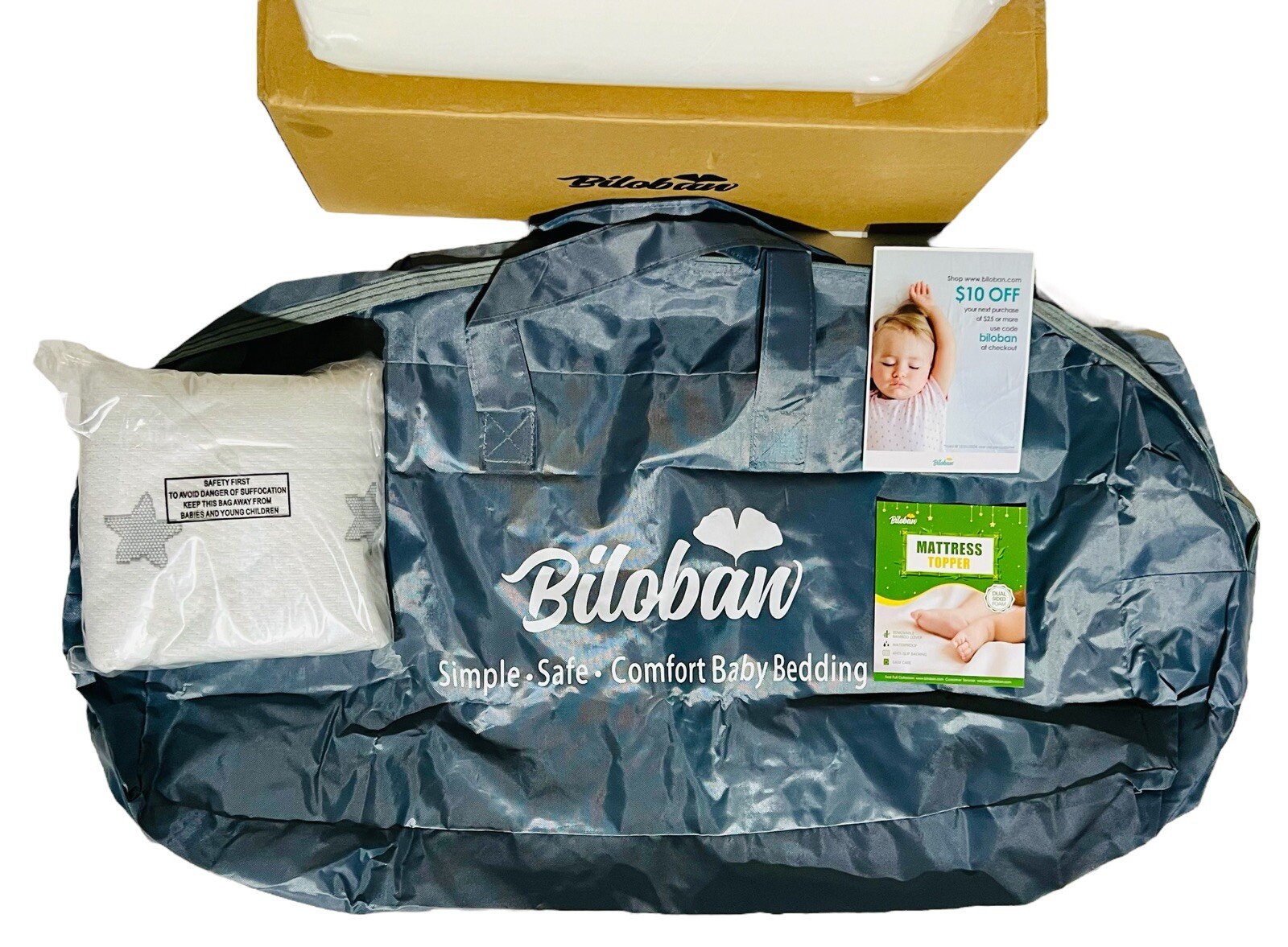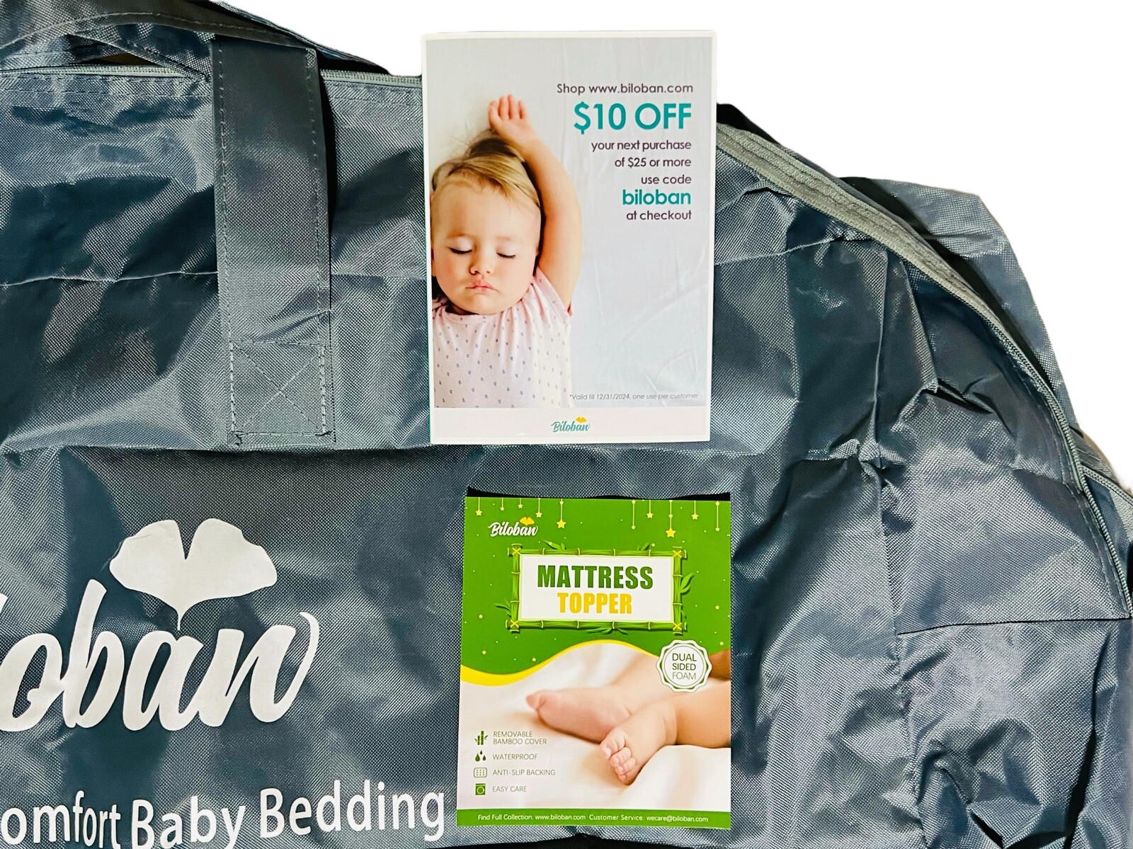 Baby BILOBAN MATTRESS TOPPER - Removable Zippered Cover Travel Carrying Bag