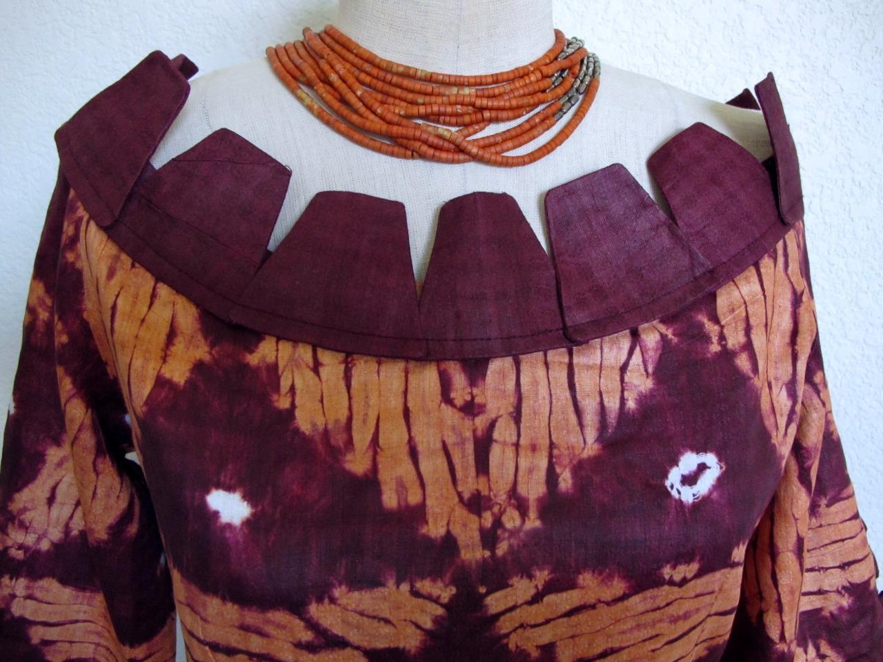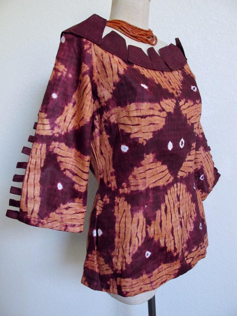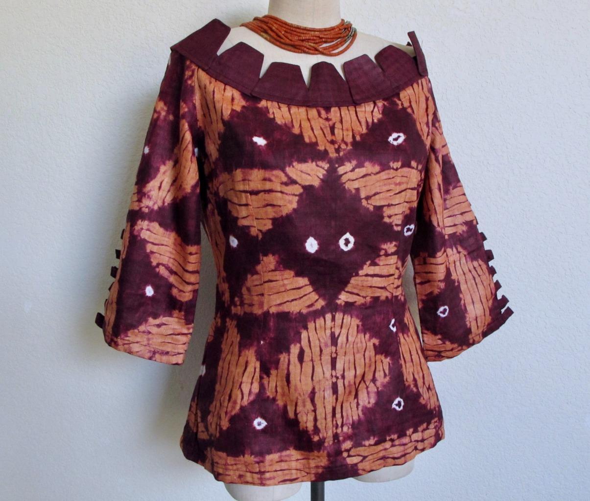Nouveau Collections Nigeria Batik Top XS 2 4 Sawtooth Trim Orange Purple Blouse