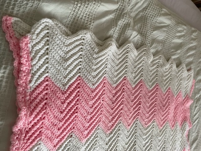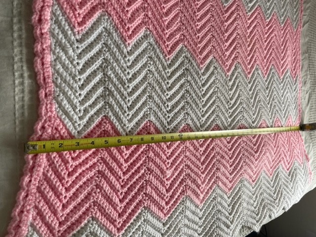 Chevron Pink White Heavy Crocheted Baby Blanket - Excellent Condition