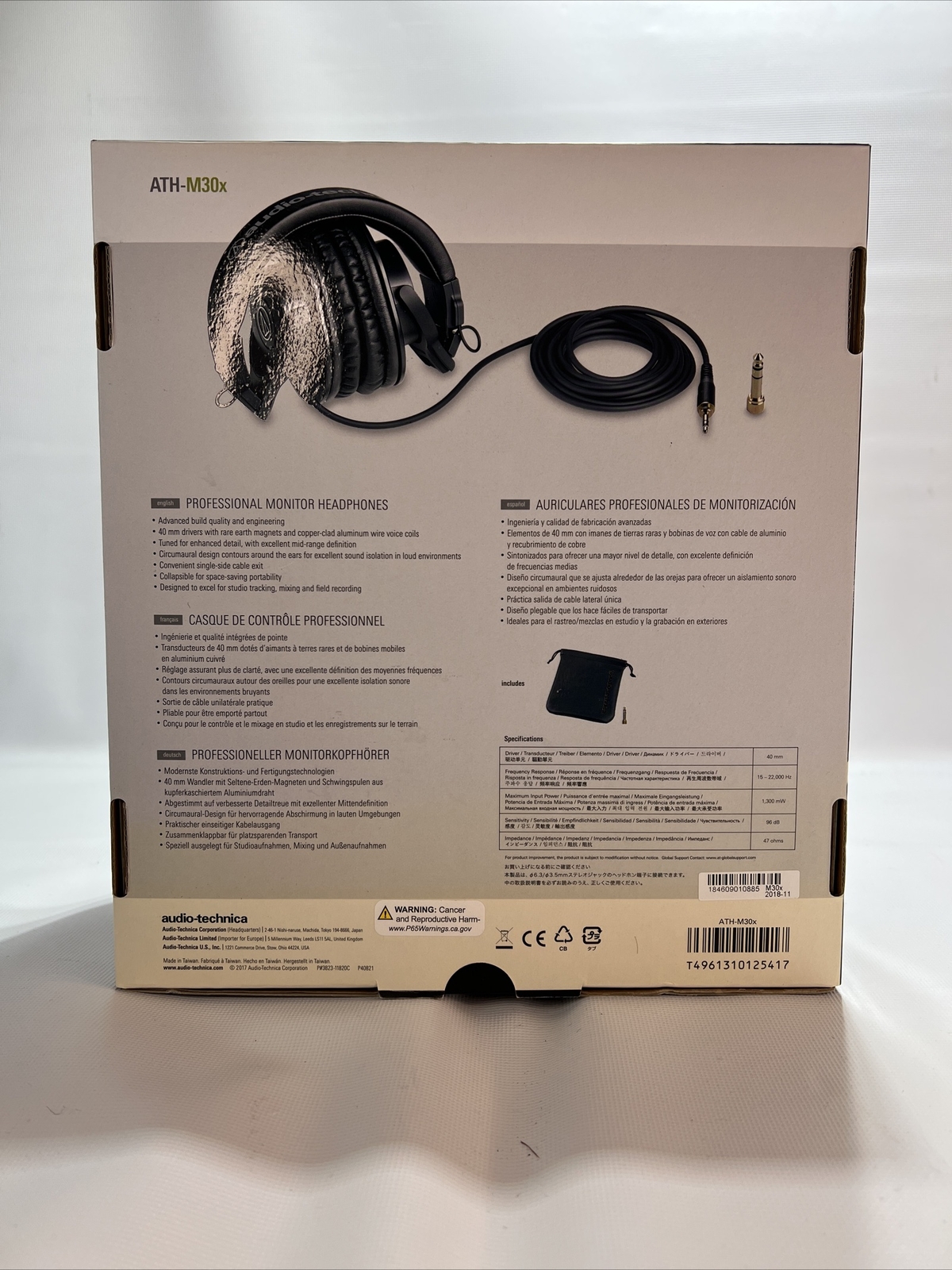 Audio-Technica ATH-M30X Professional Closed Back Monitor Headphones PROAUDIOSTAR