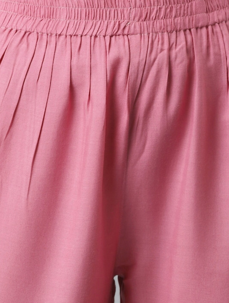 USA Seller - Brand New Women Pink Floral Regular Kurta with Trousers Dupatta