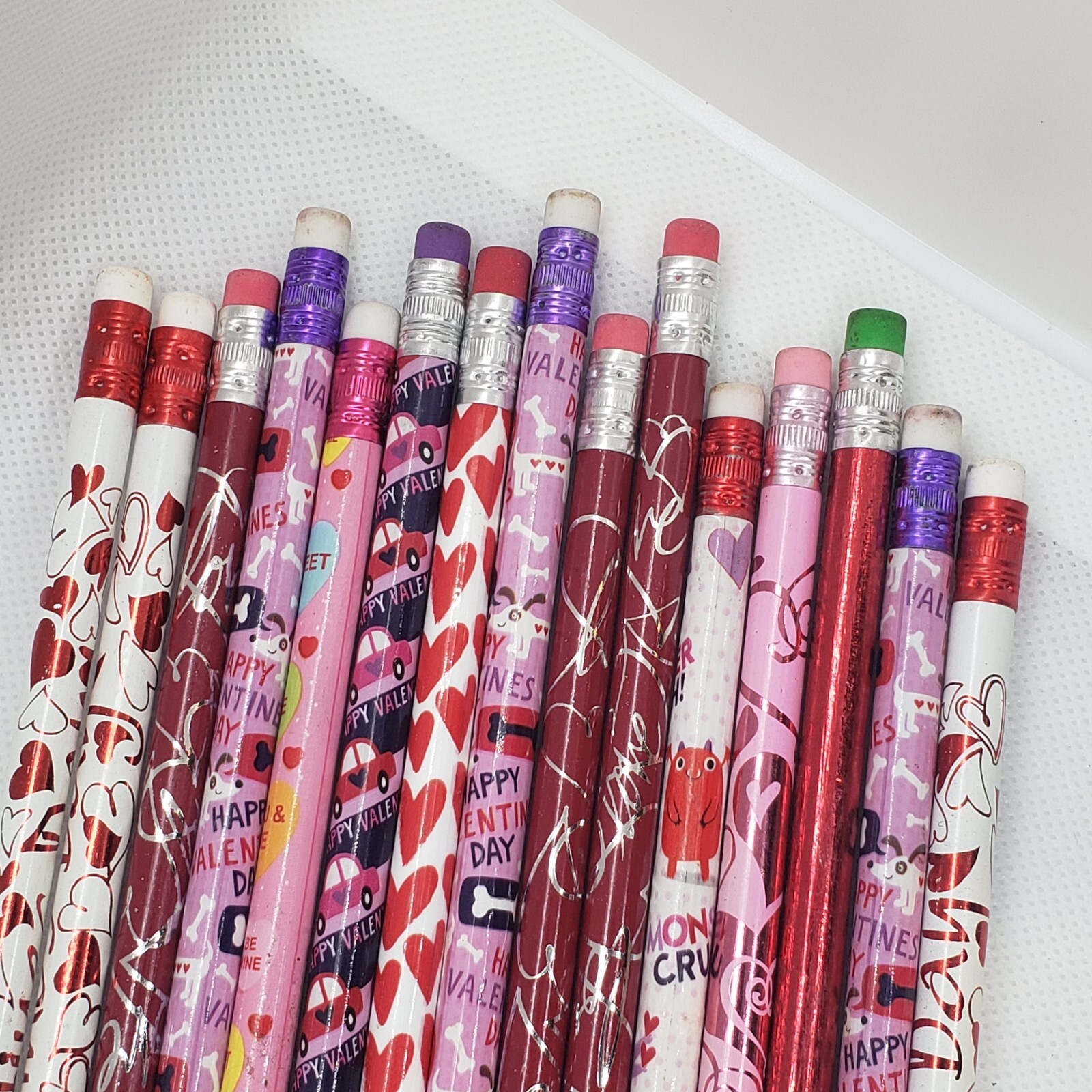 Lot 15 Valentine's Day Novelty Pencils Hearts Love Early 2000's Red White Pink