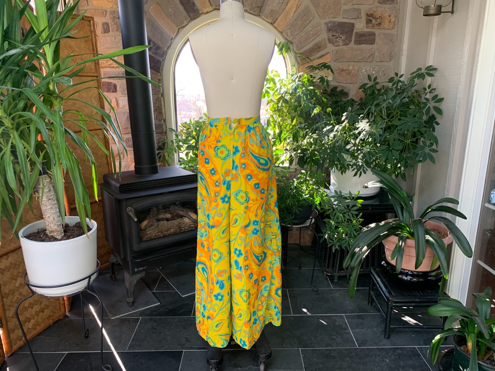 как выглядит Vintage 1970s Colorful Bold Floral Print Palazzo Pants E J Korvette Deadstock фото
