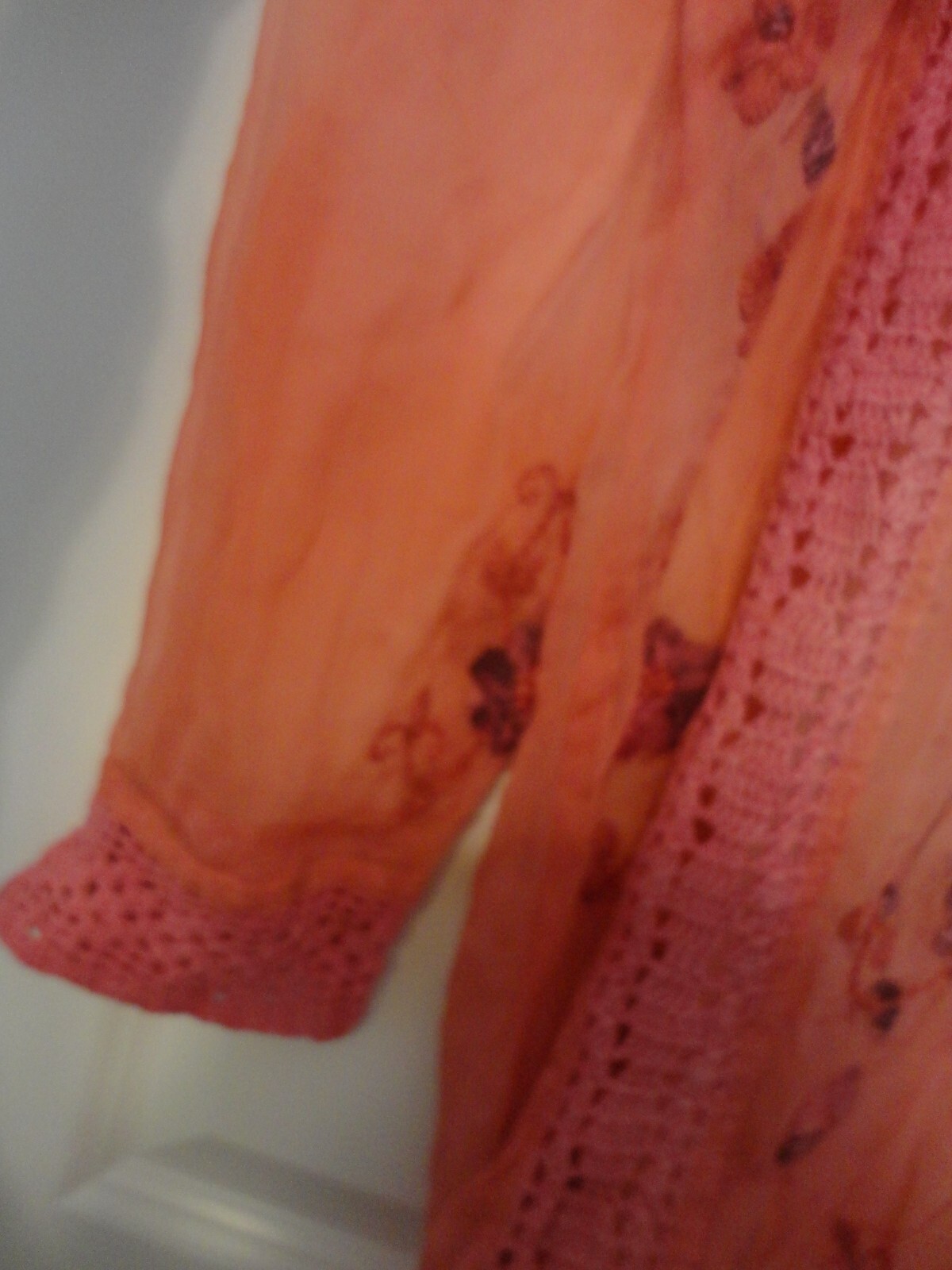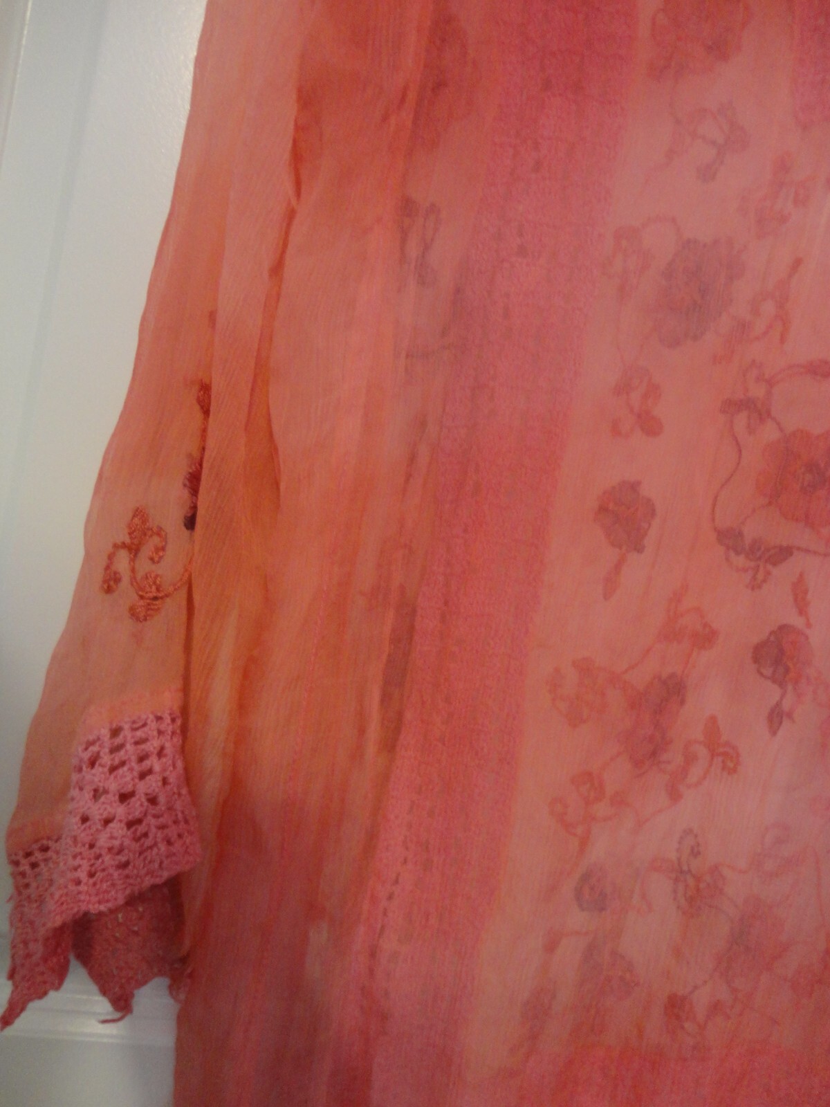 как выглядит PAKISTAN INDIA HAND EMBROIDERED CROCHET LACE CHIFON PINK WOMEN BLAOUSE TOP KURTI фото