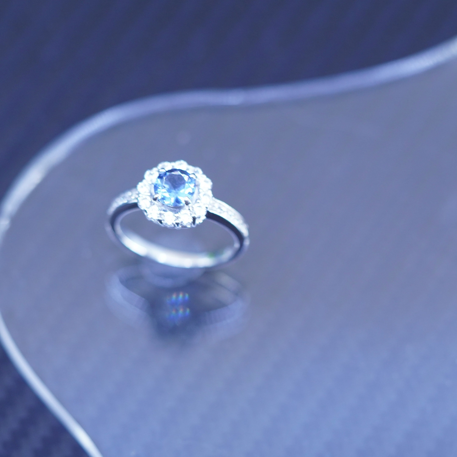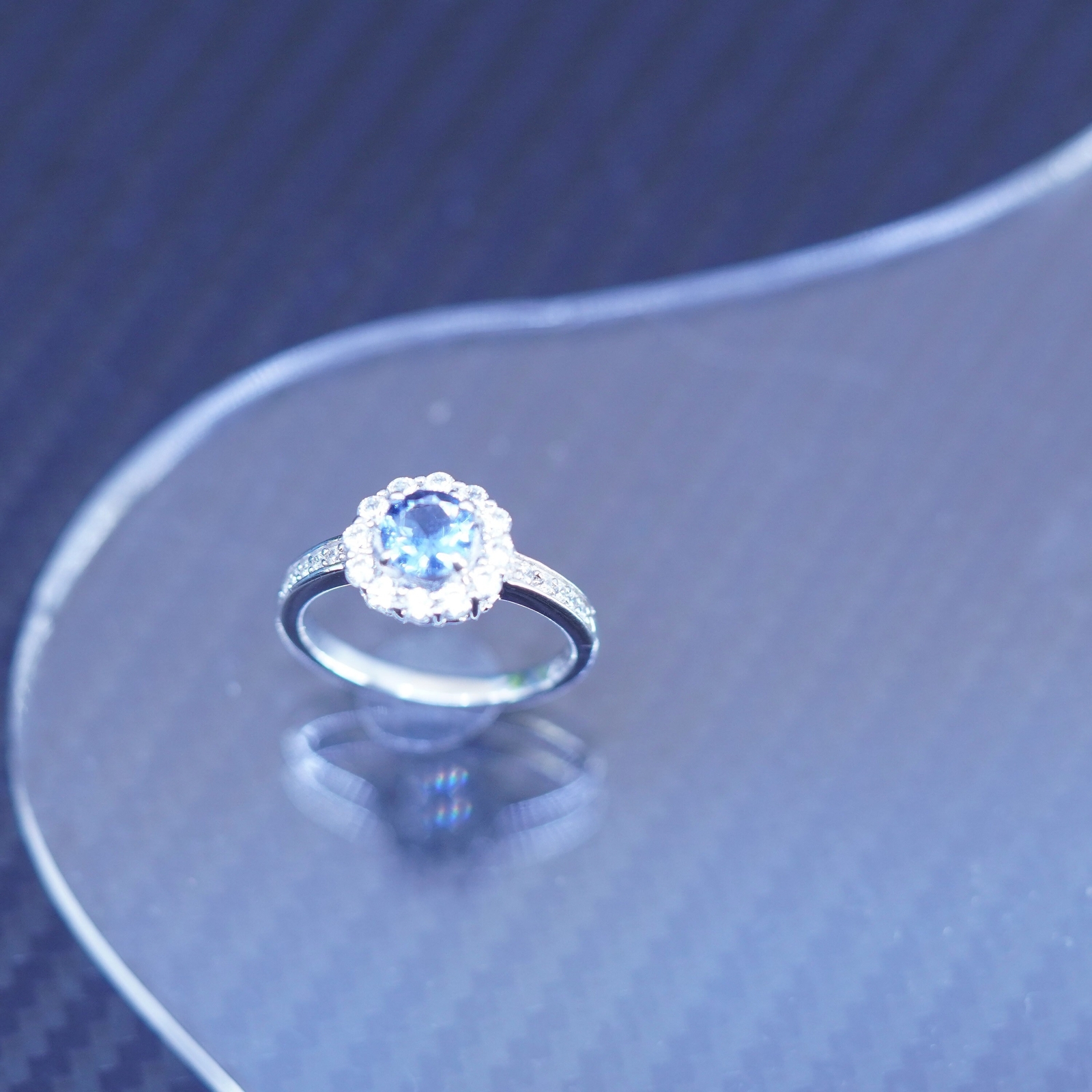 Size 7, vintage sterling silver 925 engagement ring with blue crystal