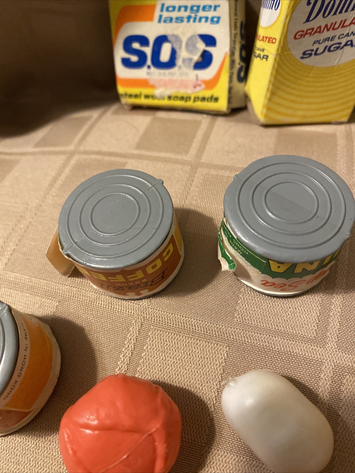 как выглядит Vintage Toy Mini Foods, "Cans , Boxes Lot фото