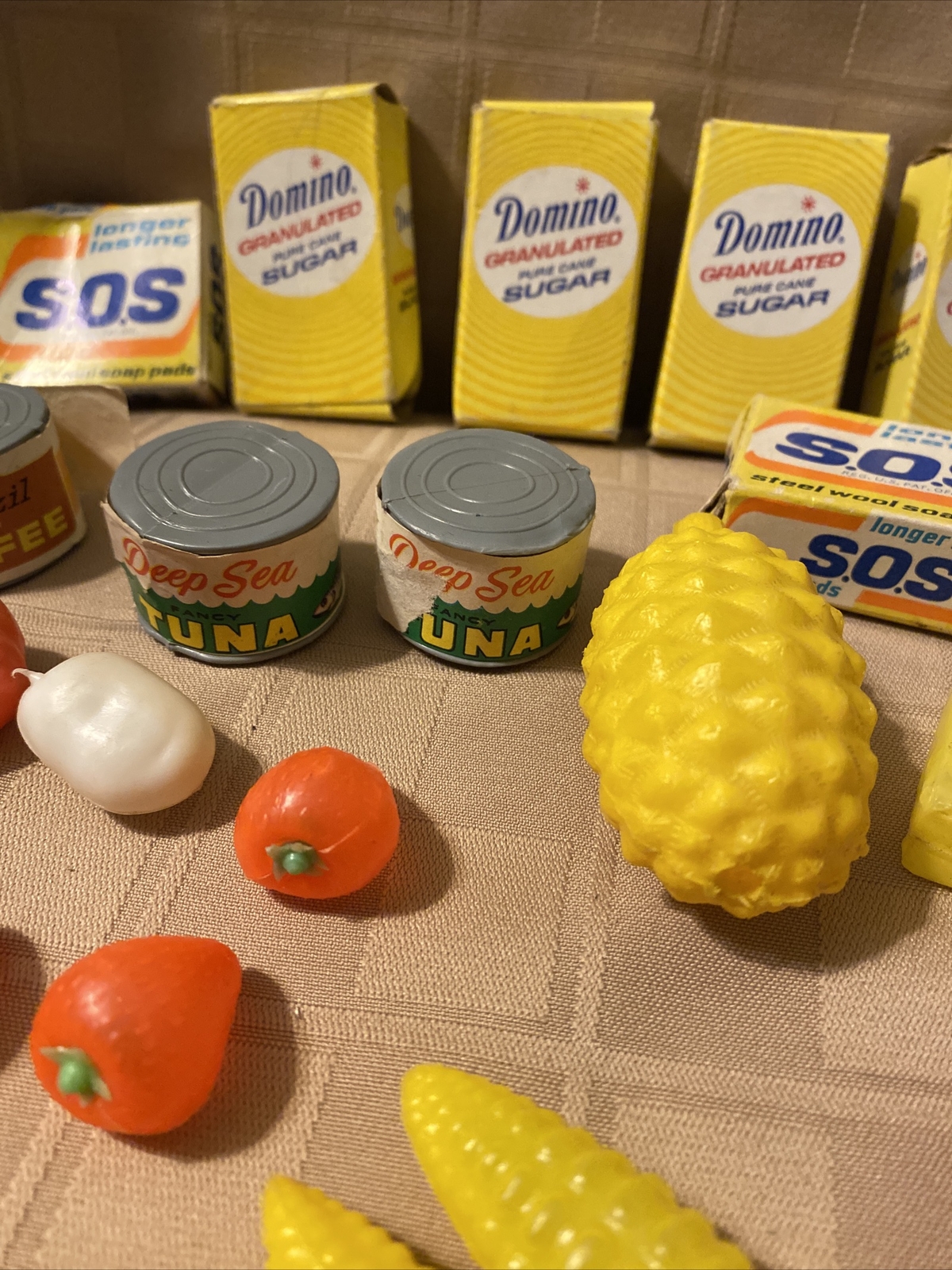 Vintage Toy Mini Foods, Cans , Boxes Lot