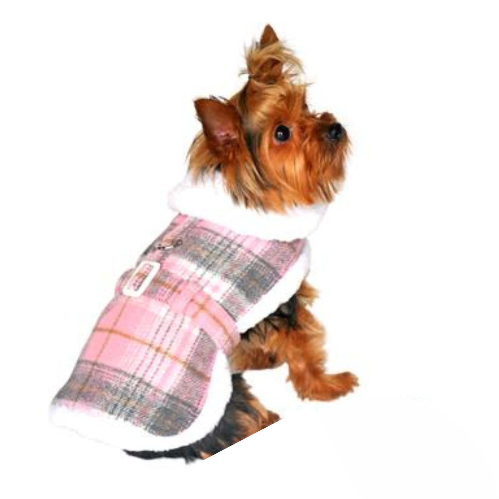 Doggie Design Fleece-Lined Dog Harness Coat - Pink White Plaid