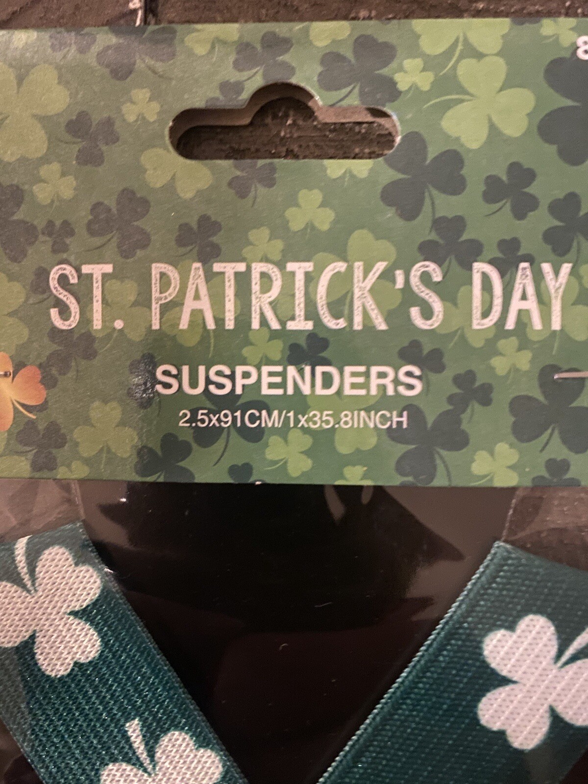 как выглядит St Patrick Day Men Suspenders - Green Mens Suspenders with White Shamrocks - фото