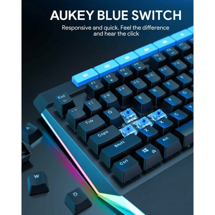 AUKEY KMG17 Mechanical Keyboard Blue Switches 104key with Volume Control Button