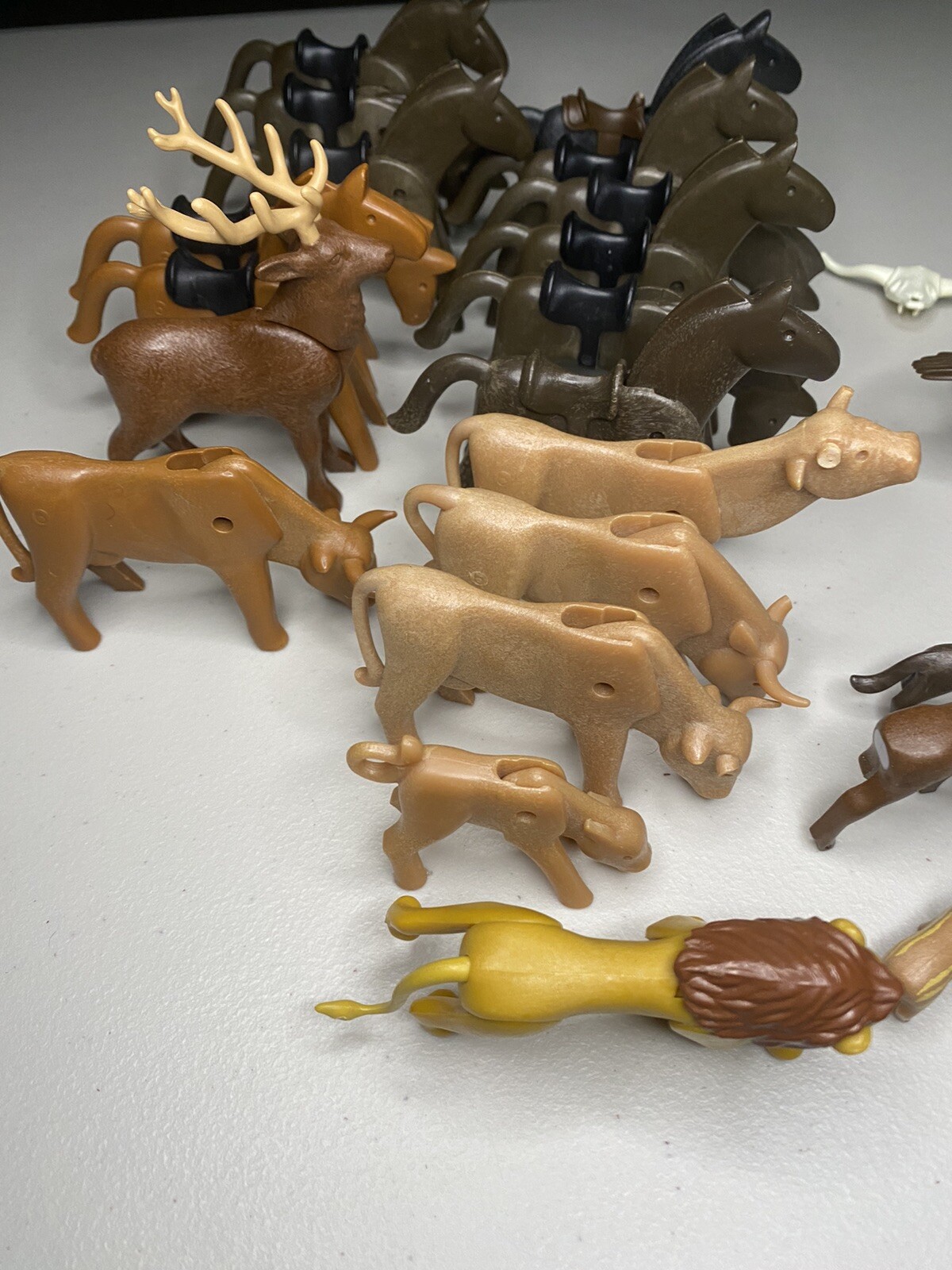 Vintage Playmobil Mixed Lot Of Animals Horses, Deer, Cows, Etc