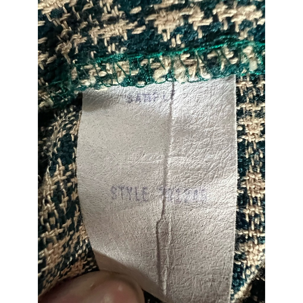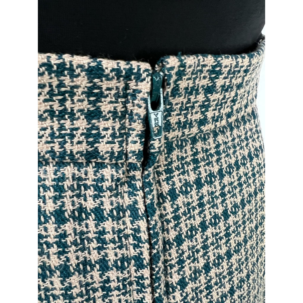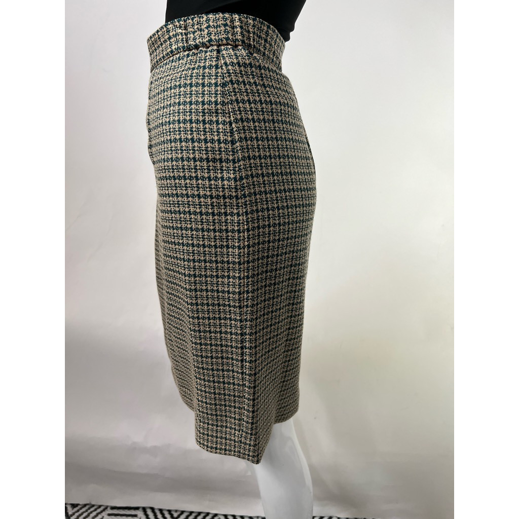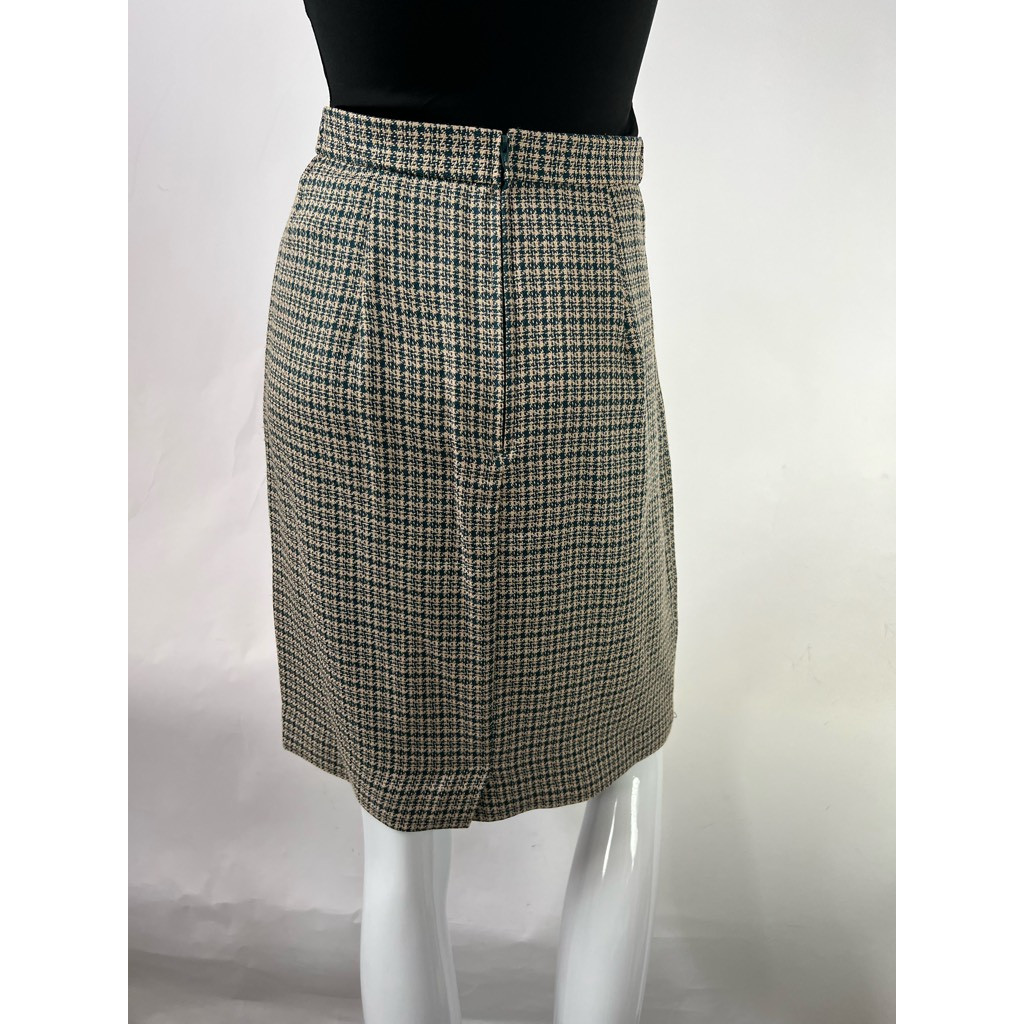 как выглядит Vintage Pencil Skirt Womens Green Ivory Houndstooth Knee Length Back Slit 12 фото