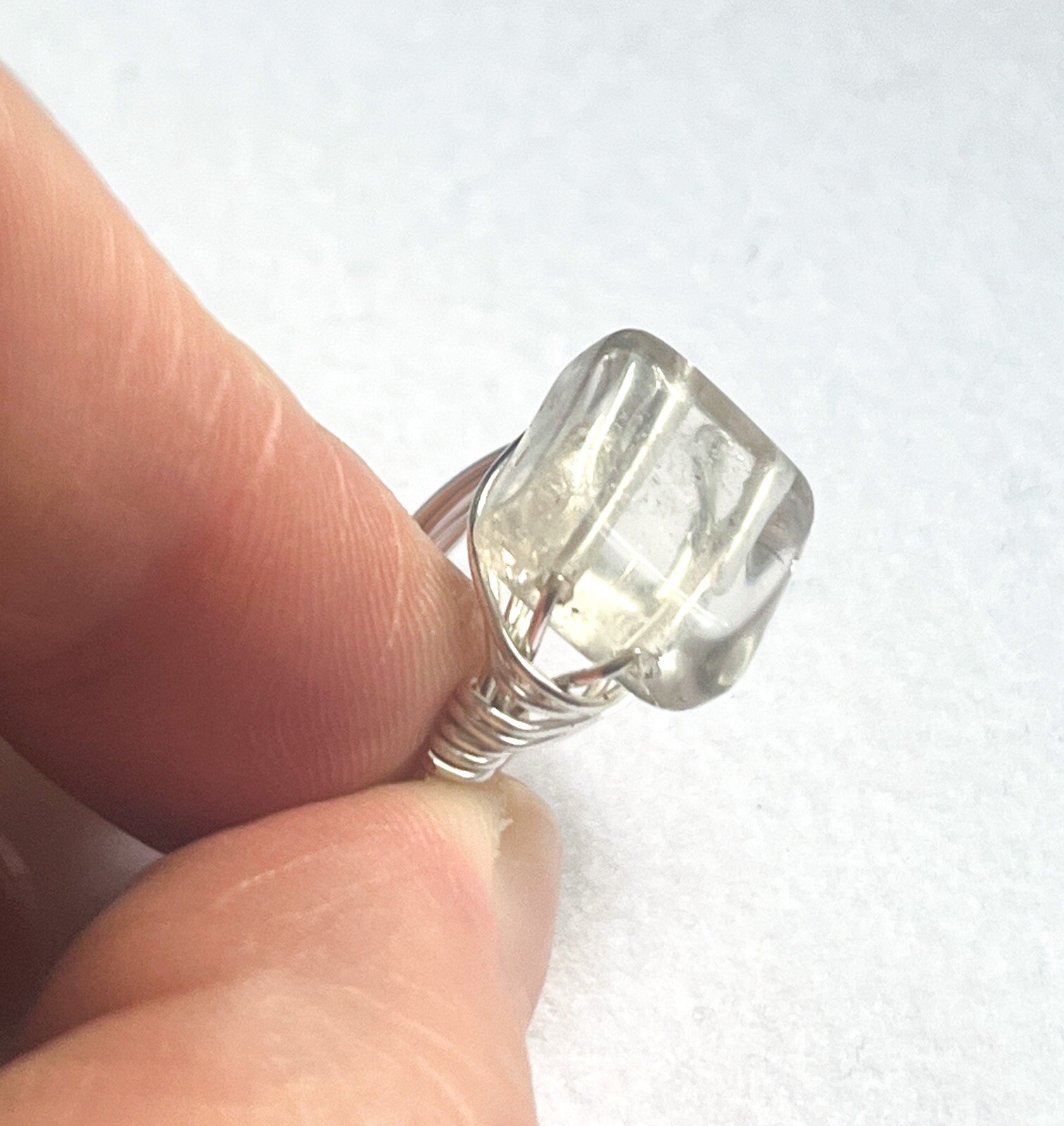 Crystal Quartz Gemstone Wire Wrap Silver Ring, Custom Sizing, Health Jewelry