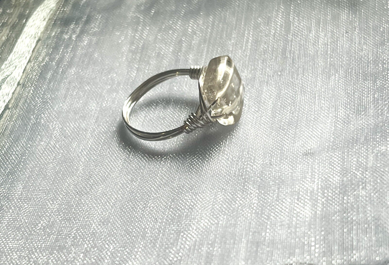 как выглядит Crystal Quartz Gemstone Wire Wrap Silver Ring, Custom Sizing, Health Jewelry фото