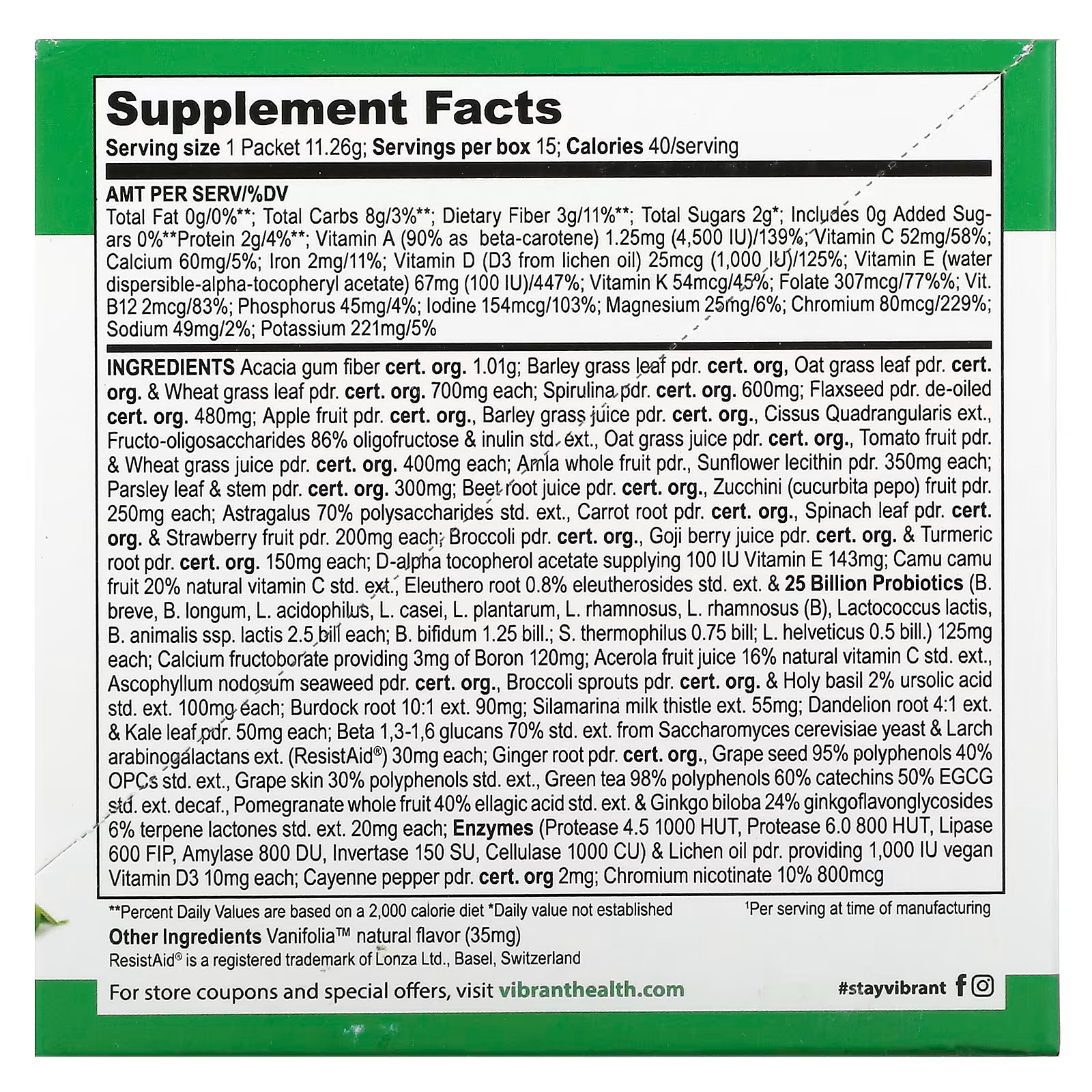 Vibrant Health Green vibrance Powder - 15 ToGo Packets